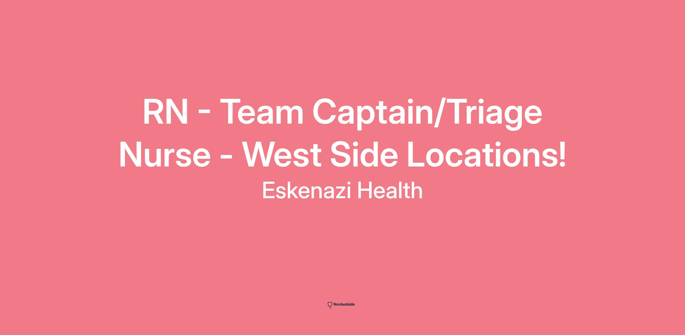 Job Role Summary The Team Captain RN and Triage Nurse RN are positions that allow for a collaborative approach to the patient's healthcare in a multitude of ways.