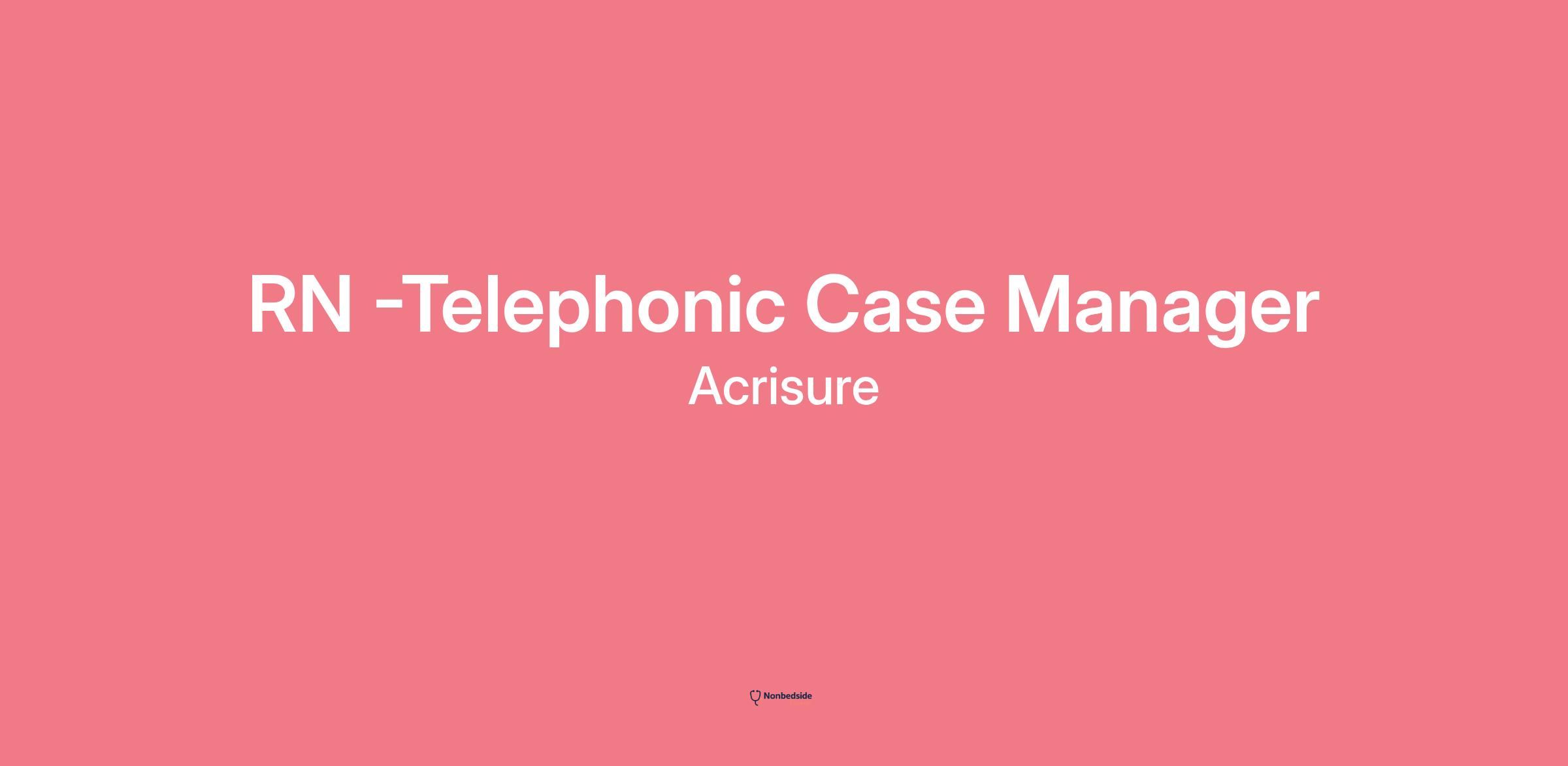 Overview RN - Telephonic Case Manager role at Acrisure. This position involves working with treating physicians/providers, employers, claim representatives, legal representatives, and injured/disabled individuals to create and implement safe and effective Return to Work plans, and to facilitate appropriate and cost-effective medical services to achieve maximum medical improvement and recovery.