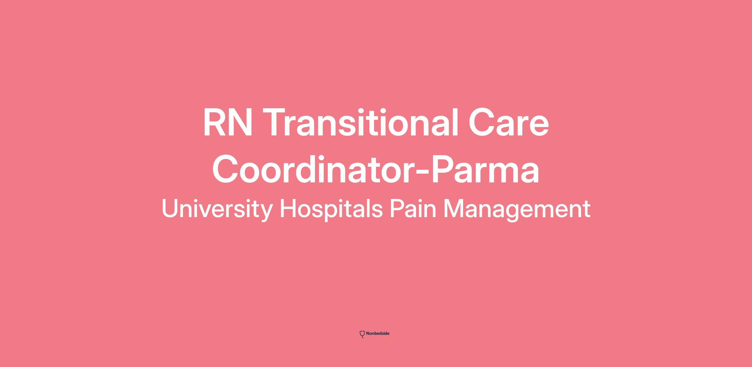 Description This RN Transitional Care Coordinator position is located at UH Parma Medical Center and will be full-time, 40 hours per week on day shift and rotating weekends/holidays.