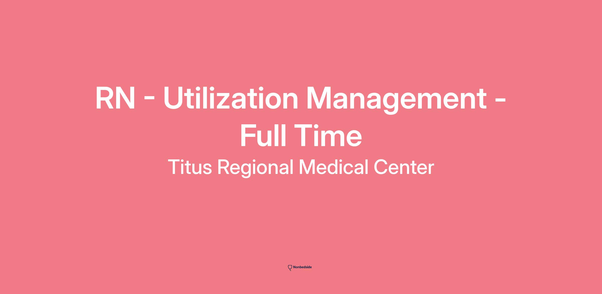 Join to apply for the RN - Utilization Management - Full Time role at Titus Regional Medical Center