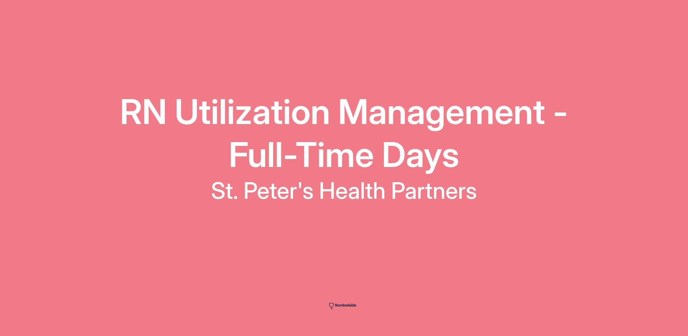 Join to apply for the RN Utilization Management - Full-Time Days role at St. Peter's Health Partners