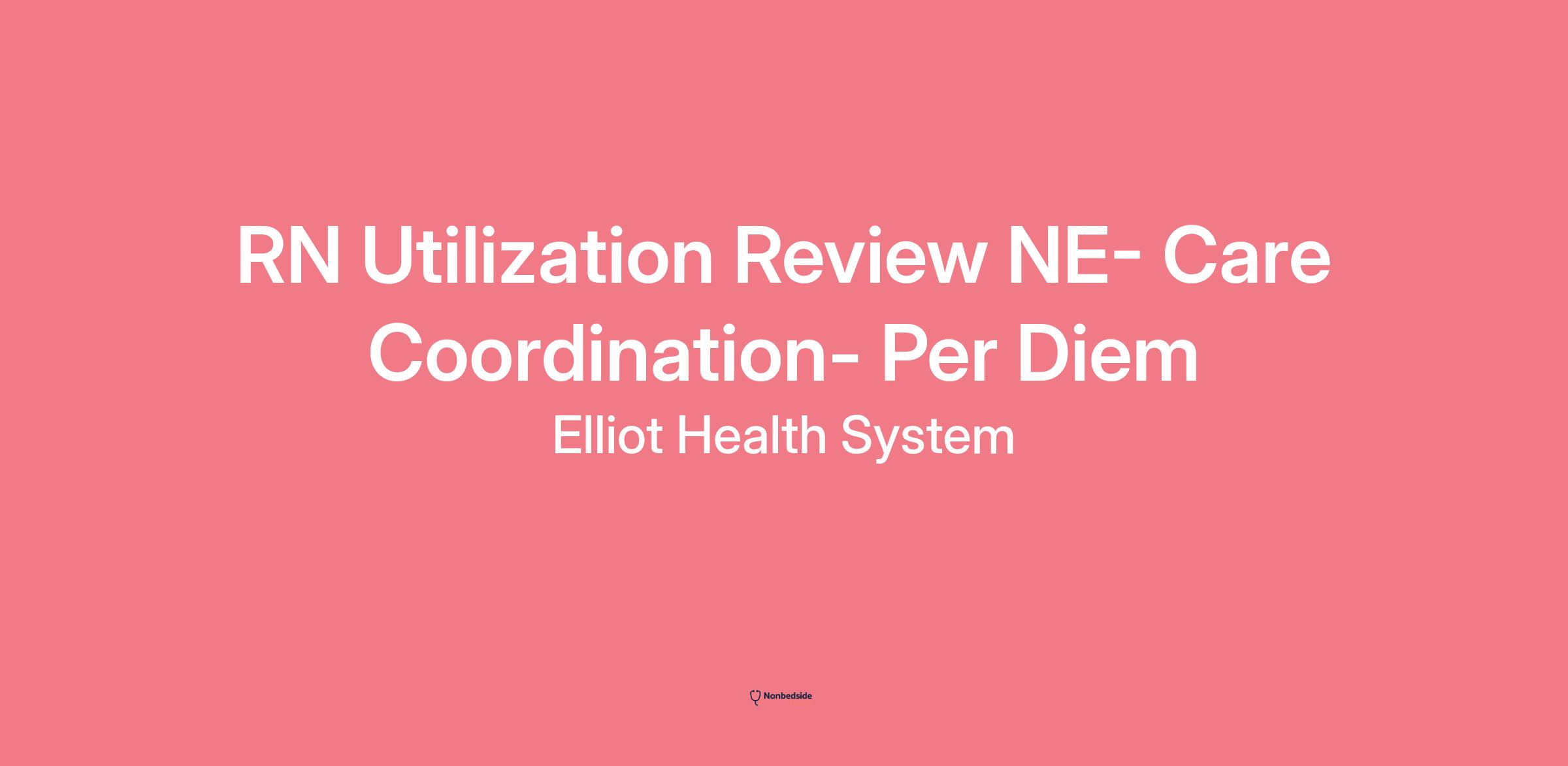 RN Utilization Review NE- Care Coordination- Per Diem page is loaded## RN Utilization Review NE- Care Coordination- Per Diemlocations: Manchester, NHtime type: Part timeposted on: Posted 2 Days Agojob requisition id: JR9639Come work at the best place to give and receive care!**Job Description:****RN Utilization Review****Who We Are:**Elliot Health System’s Care Coordination Department, located in Manchester, NH, plays a vital role in ensuring seamless, patient-centered care across the healthcare continuum. Our team is dedicated to care management, discharge planning, and patient advocacy, working closely with providers, social workers, and community resources to enhance patient outcomes. By developing individualized care plans, facilitating smooth transitions between care settings, and offering proactive support, we help patients navigate complex healthcare needs while improving overall access to high-quality, coordinated care.**About the Job:**Under the direction of the Director of Care Coordination, the Utilization Review RN (UR RN) is responsible for ensuring the effective and efficient use of hospital services in alignment with the hospital’s utilization review plan.**What You’ll Do:*** Complete admission reviews to determine the appropriate level of care.* Document continued stay reviews to assess the necessity of inpatient care, procedures, and estimated length of stay.* Communicate and collaborate with payer care managers to prevent denials by ensuring timely clinical reviews.* Address potential denials proactively, working with physicians and payer representatives to minimize retrospective denials.* Screen all patients upon admission or the next business day to determine appropriate level of care using medical necessity tools, Medicare Inpatient Only List, and payer requirements.* Monitor observation status patients to ensure appropriate utilization, and collaborate with admitting physicians if documentation does not support the current level of care.* Perform concurrent reviews to justify extended stays, working with attending physicians to ensure accurate documentation of medical necessity.* Refer cases that do not meet admission or continued stay guidelines to the Utilization Review Physician Advisor after discussions with attending physicians.**Who You Are:*** Graduate of an accredited nursing program (Bachelor’s degree in Nursing required for nurses hired after May 2015 or commitment to obtain within a specified timeframe).* Minimum of three (3) years of experience in hospital case management or utilization management.* Active New Hampshire or Compact State RN license required.* CCM or ACM certification preferred.**Why You’ll Love Us:*** Health, dental, prescription, and vision coverage for full-time & part-time employees* Short-term, long-term disability, life & pet insurance* Tuition reimbursement* 403(b) Retirement savings plans* Continuous earned time accrual**Work Shift:**Days*SolutionHealth is an equal opportunity employer and all qualified applicants will receive consideration for employment without regard to race, color, religion, sex, sexual orientation, disability status, veteran status, or any other characteristic protected by law.*