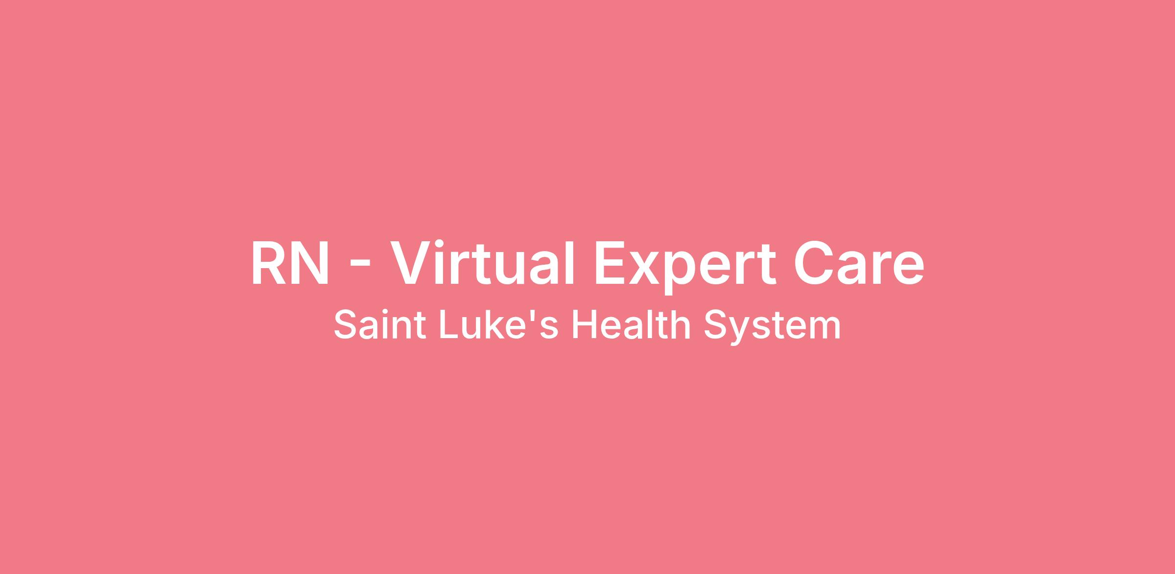 Saint Luke's is looking for an experienced RN to serve as a Virtual Care Expert. This role is located at the Virtual care Center in Lees Summit.