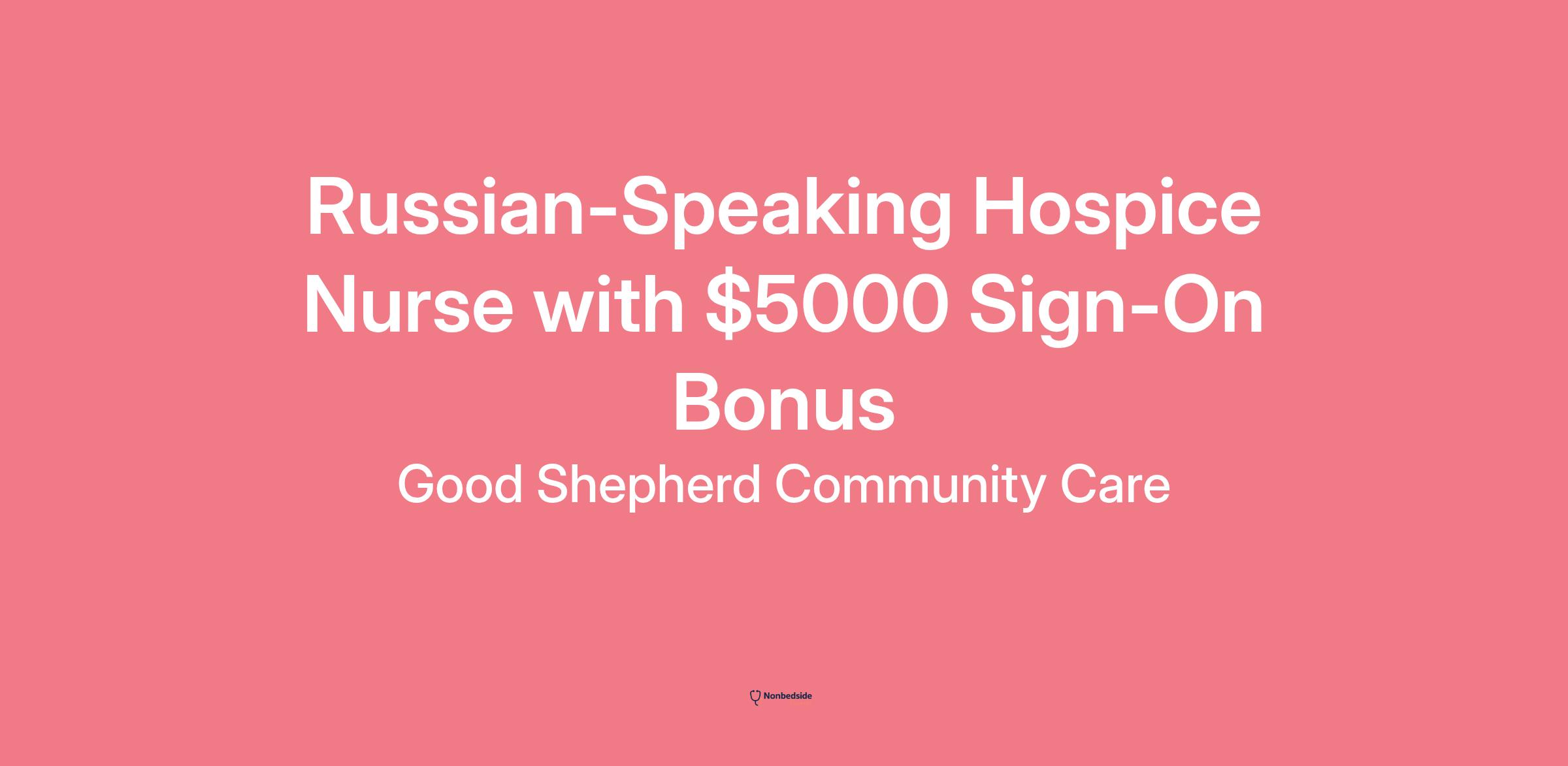 Russian-Speaking Hospice Nurse with $5000 Sign-On Bonus Join to apply for the Russian-Speaking Hospice Nurse with $5000 Sign-On Bonus role at Good Shepherd Community Care