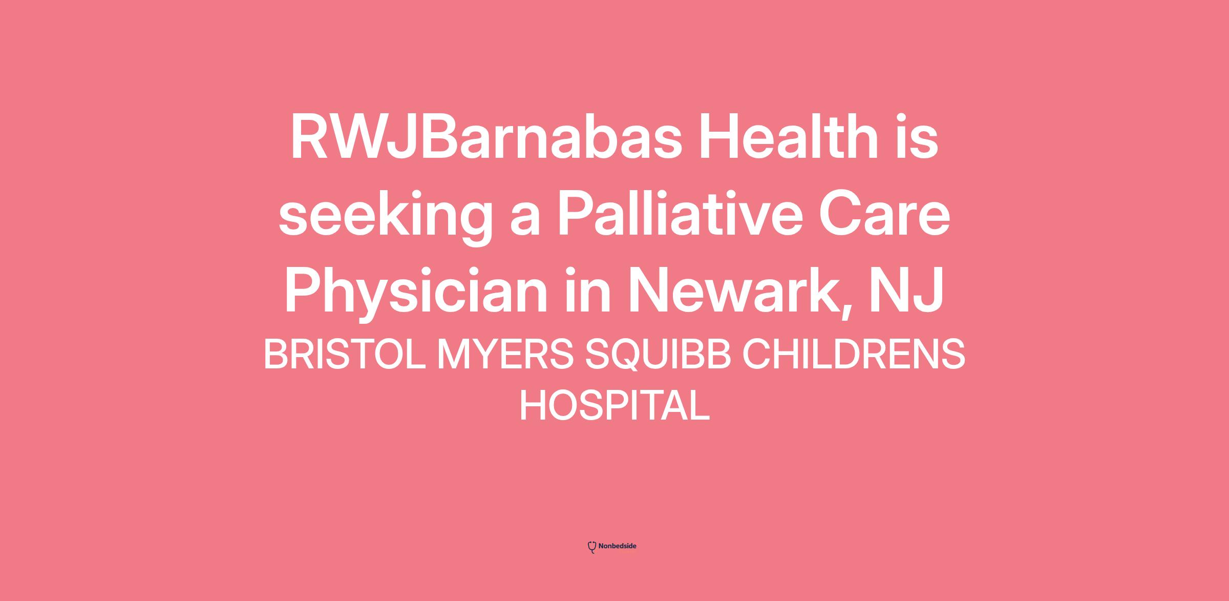 RWJBarnabas Health is seeking a Palliative Care Physician in Newark, NJ Contact a Physician Recruiter Job ID: 1054663