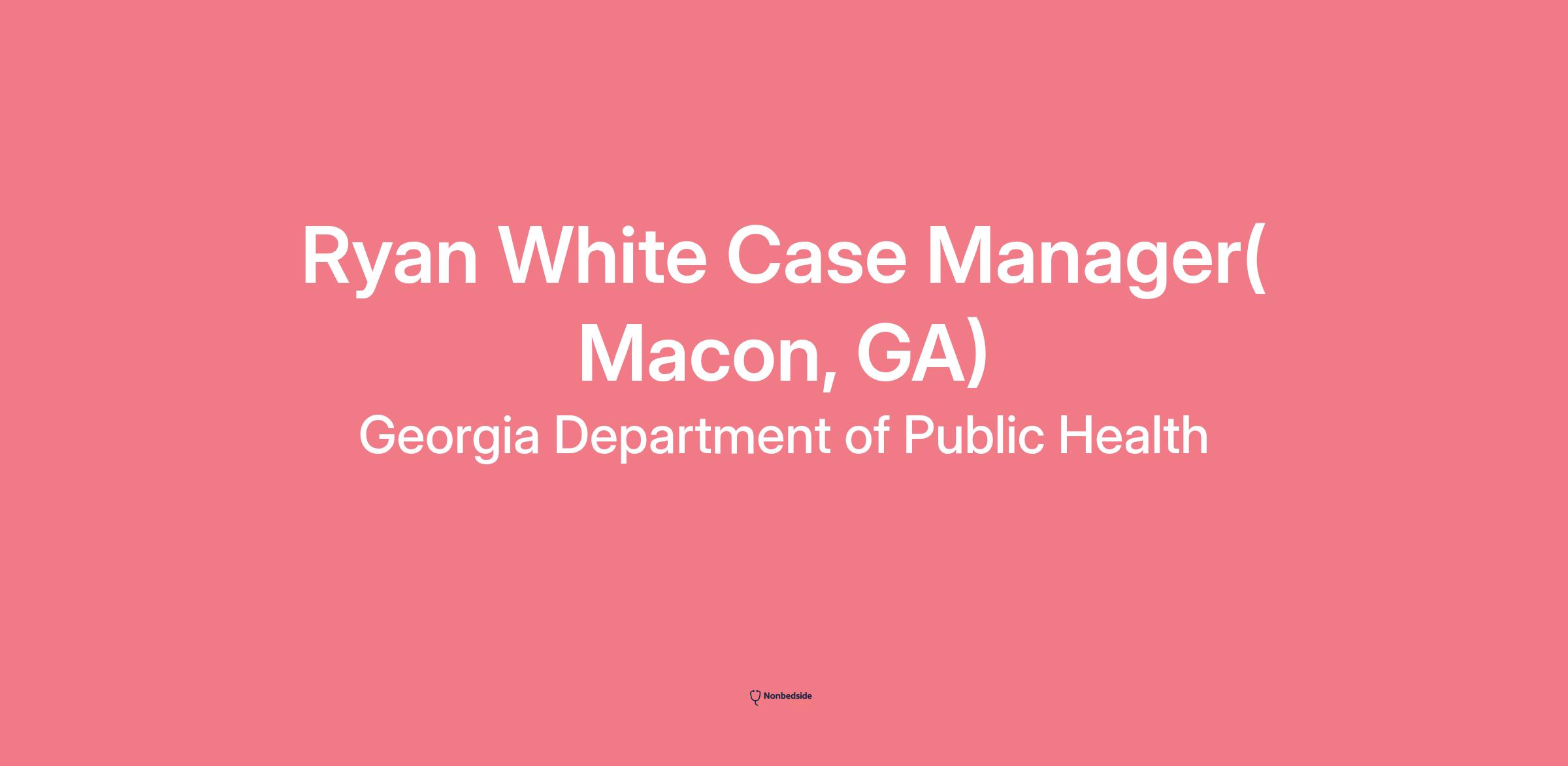 Join the Georgia Department of Public Health (DPH) as a Ryan White Case Manager in Macon, GA. As a state agency, DPH protects lives and promotes healthy lifestyles throughout Georgia.