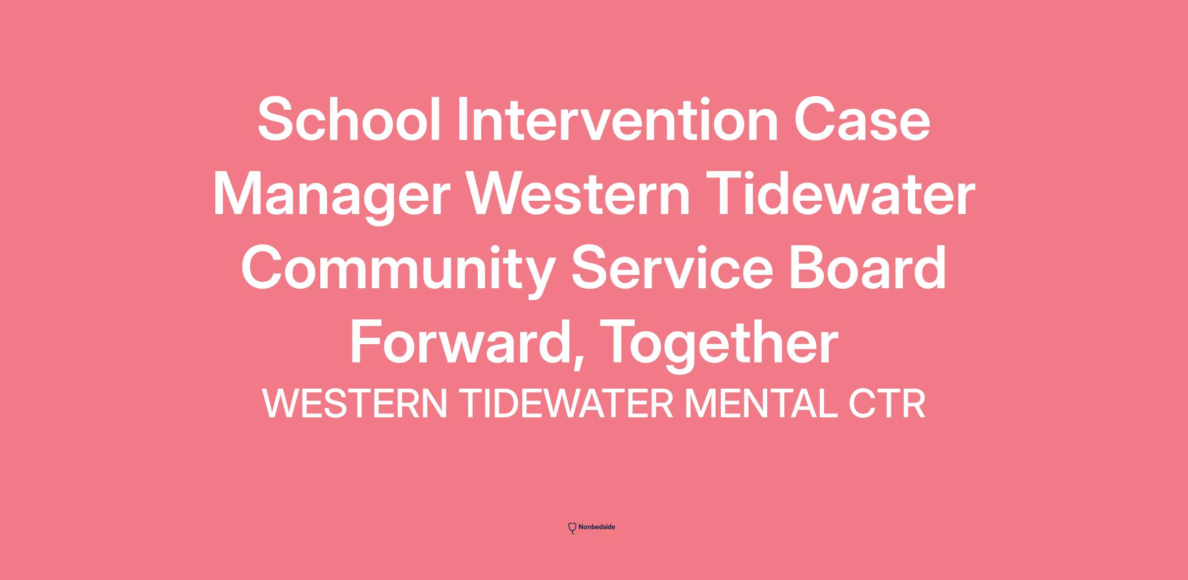 Western Tidewater CSB is seeking qualified Case Managers for our School Intervention Program (SCIP) department. **Substance Abuse and/or Mental Health experience is preferred for this position. ** Responsibilities and Duties for Case Manager: Teach consumers appropriate strategies to manage behavioral and mental health symptoms