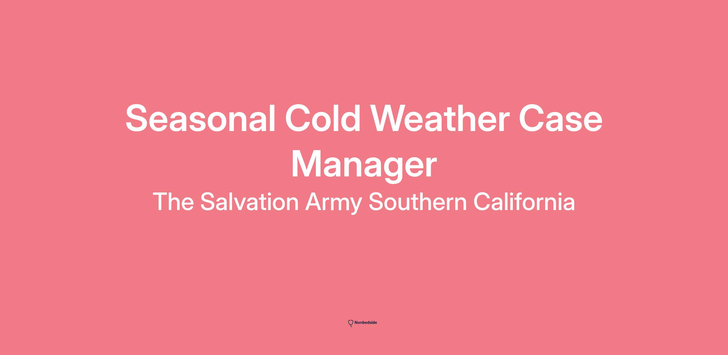 The Salvation Army will provide on-site staffing at the Cold Weather sheltering location during activation, including screening families for eligibility, providing rapid resolution services as appropriate, writing vouchers on the spot for cold weather, and completing HMIS intakes and data entry.