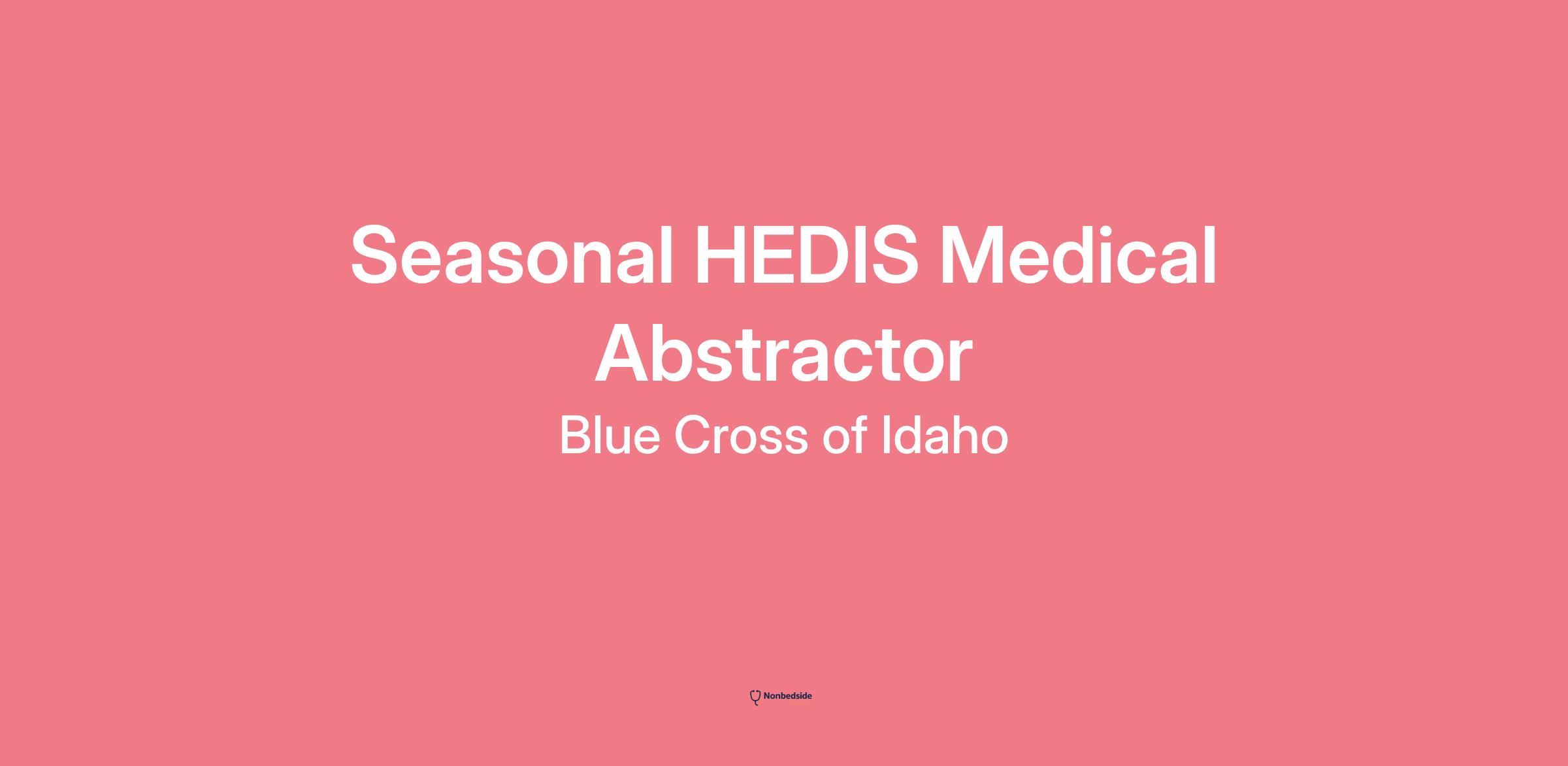 Join to apply for the Seasonal HEDIS Medical Abstractor role at Blue Cross of Idaho .