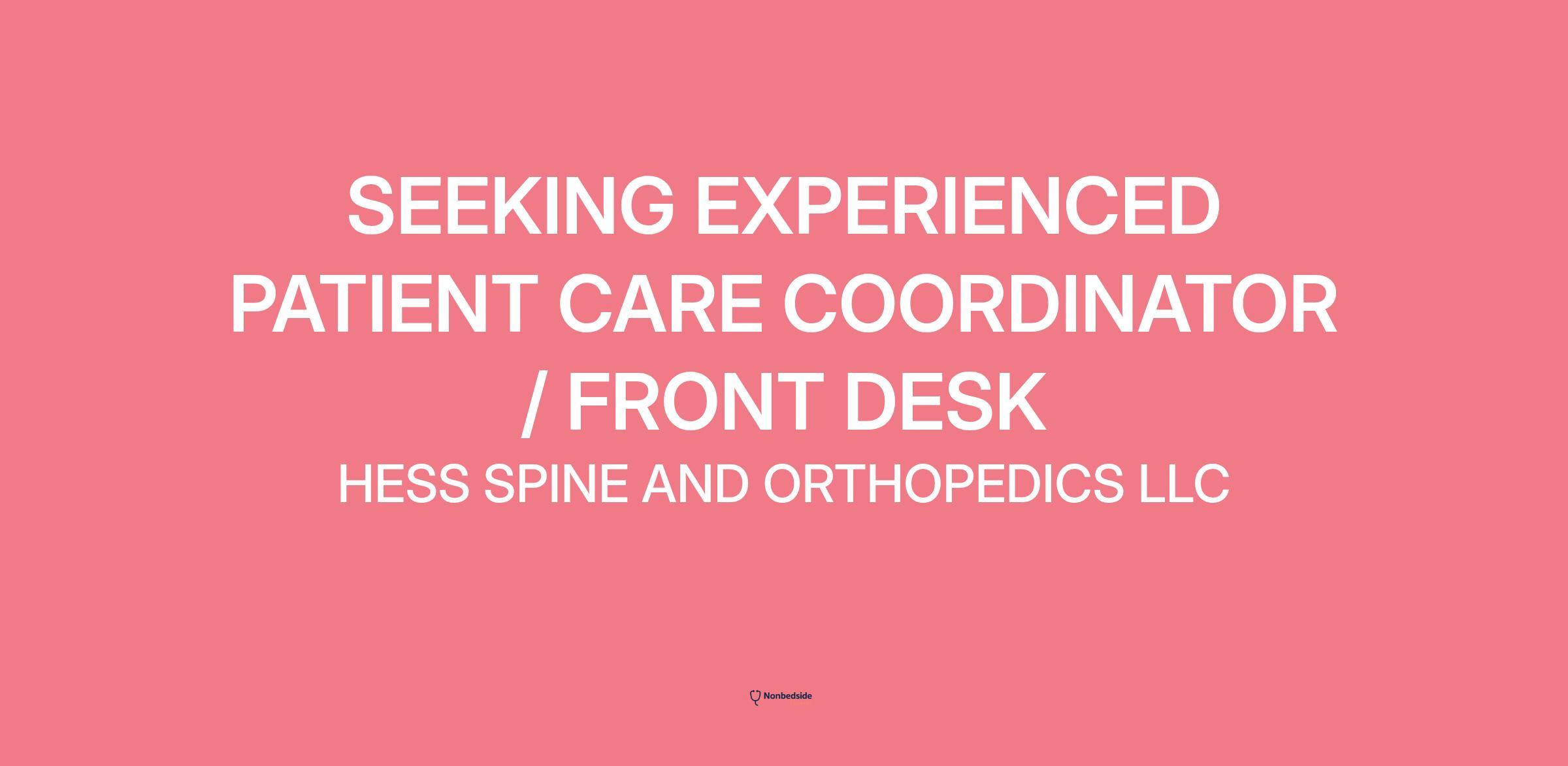 Overview Join our fast growing team of dedicated, happy, positive people making a difference in patient's lives! SEEKING EXPERIENCED PATIENT CARE COORDINATOR / FRONT DESK MUST speak fluent English and Spanish.