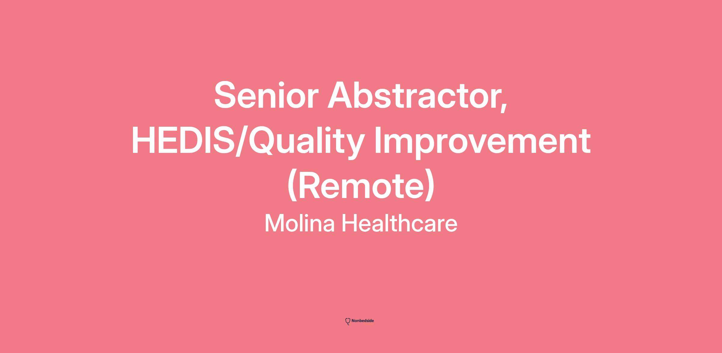Molina's Quality Improvement Sr. Abstractor conducts data collection and abstraction of medical records for HEDIS projects, HEDIS like projects and supplemental data collection. The abstraction team will meet chart abstraction productivity standards as well as minimum over read standards. Sr. Abstractors will also provide mentoring to entry level abstractors.