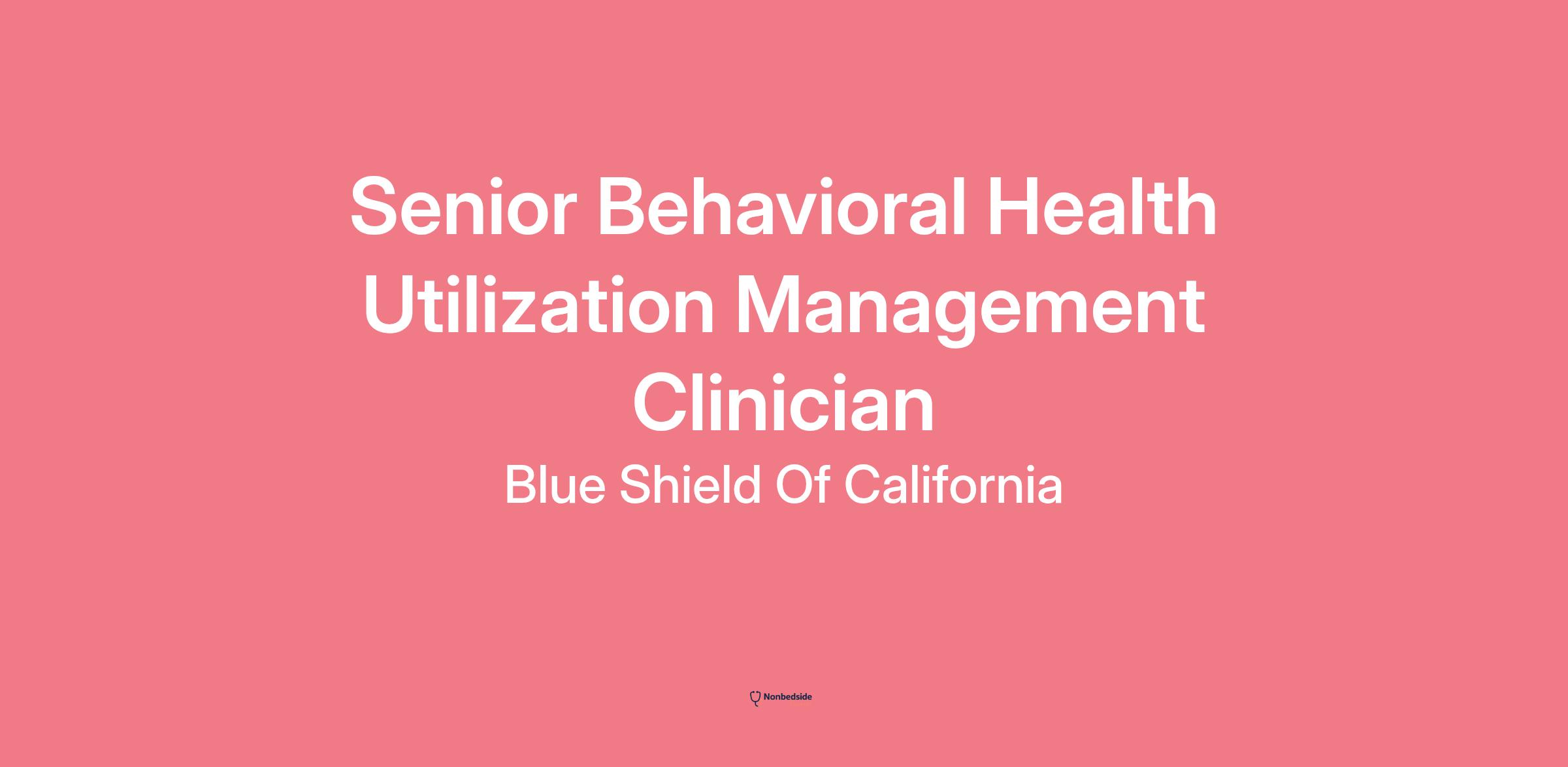 Join to apply for the Senior Behavioral Health Utilization Management Clinician role at Blue Shield of California .