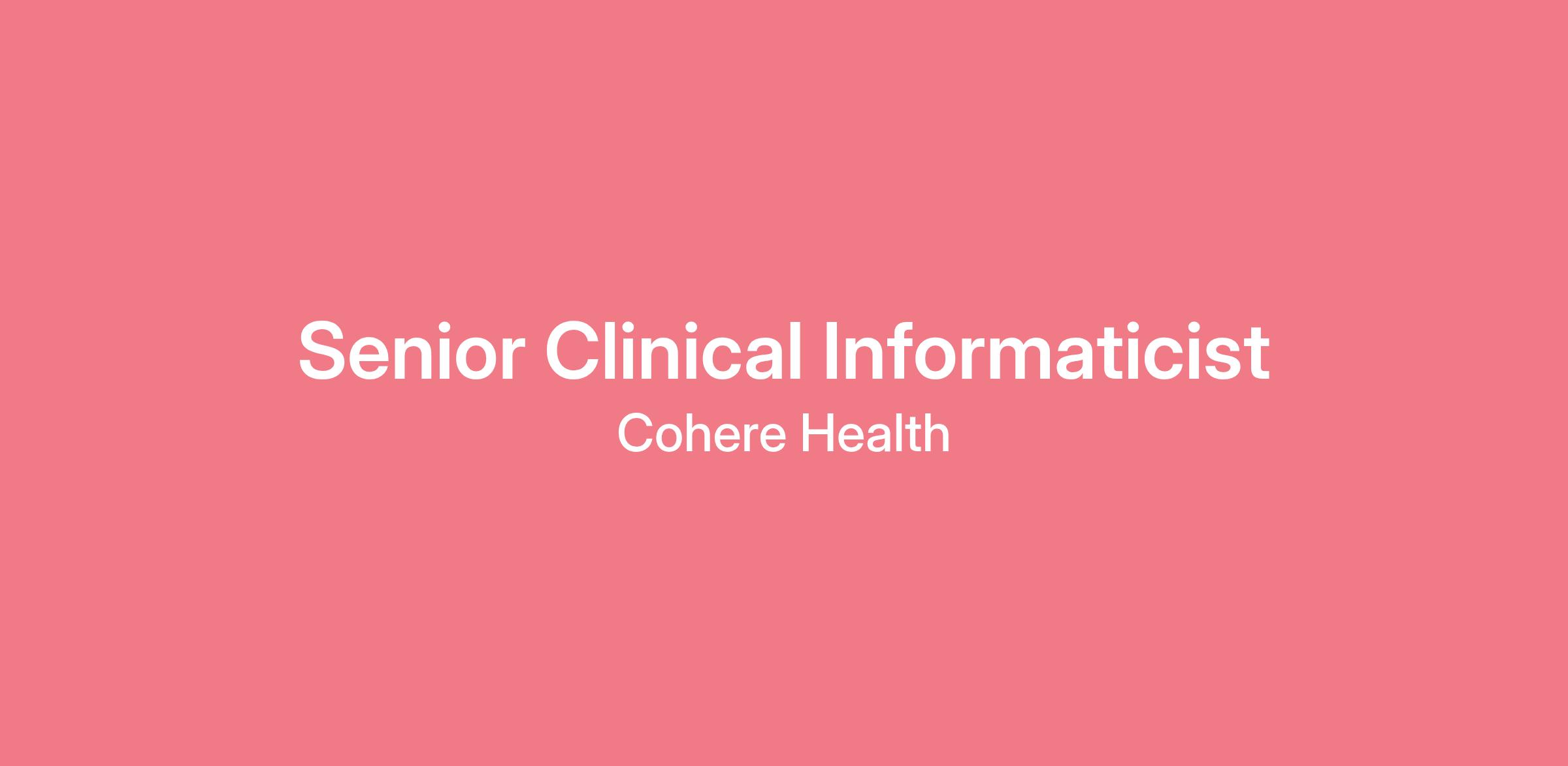 We are seeking a Senior Clinical Informaticist to join our Clinical Informatics and Data Science team. In this role, you will serve as a key bridge between clinical expertise and data science, applying deep clinical reasoning and informatics knowledge to design, evaluate, and optimize data-driven healthcare solutions. You’ll partner closely with clinicians, analysts, data scientists, engineers, and product teams to ensure safe, evidence-based workflows, high-quality datasets, and AI/machine learning model integrity. This is an opportunity to shape next-generation digital health solutions and mentor a growing team of clinical informaticians.