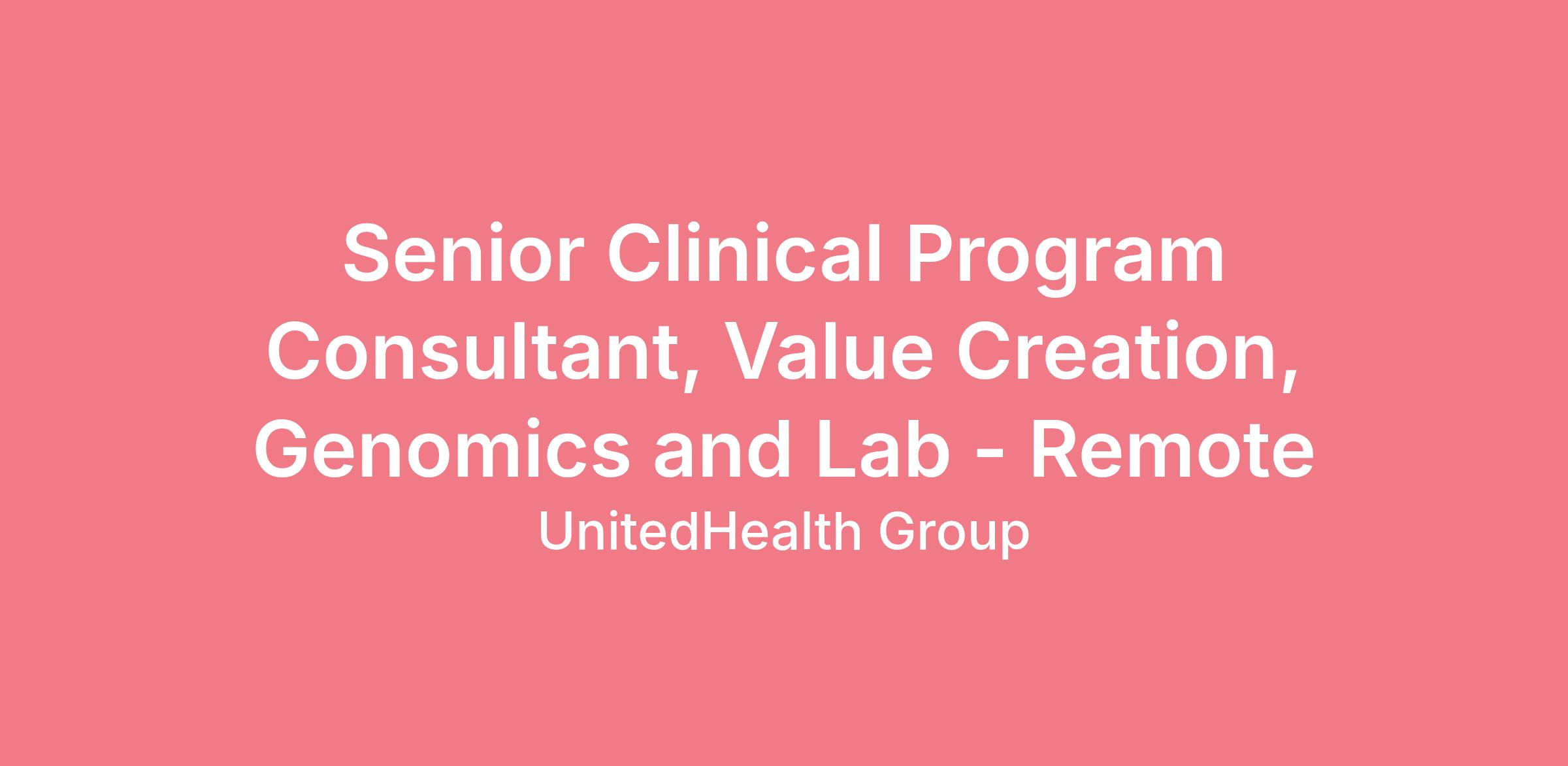 As a Senior Clinical Program Consultant, you will play a key role in program ideation, design, implementation, operations, and ongoing monitoring of genomic and laboratory testing programs. This role requires deep knowledge of genetic and molecular testing methodologies, the evolving genomics market, CPT coding, and the claims life cycle, along with solid analytical, strategic, and problem-solving skills. This role also requires familiarity with professional and facility claim processing, including but not limited to claim edits, coordination of benefits, claim reprocessing, as well as experience and knowledge of UnitedHealthcare’s enterprise claim systems. This is a high-impact opportunity for a self-starter who thrives on driving meaningful change, collaborating across teams, and leading thoughtful execution of strategies.
