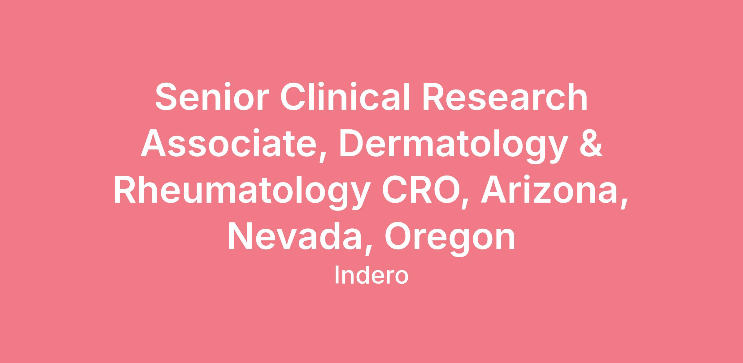 Senior Clinical Research Associate, Dermatology & Rheumatology (Oregon, Nevada, Arizona,)