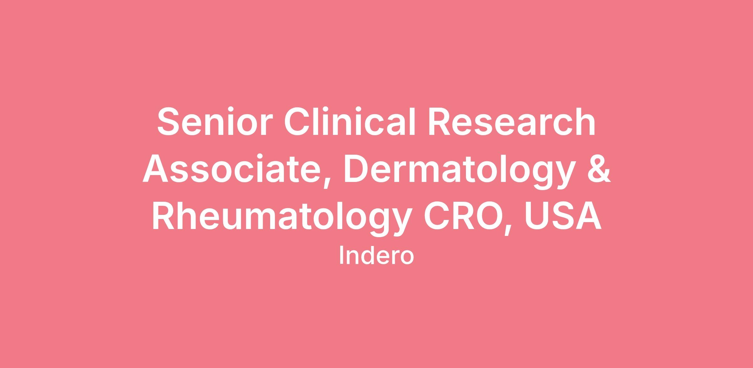 Senior Clinical Research Associate, Dermatology & Rheumatology (Illinois, Indiana, Iowa, Kansas, Michigan, Minnesota, Missouri, Nebraska, North Dakota, Ohio, South Dakota, and Wisconsin.