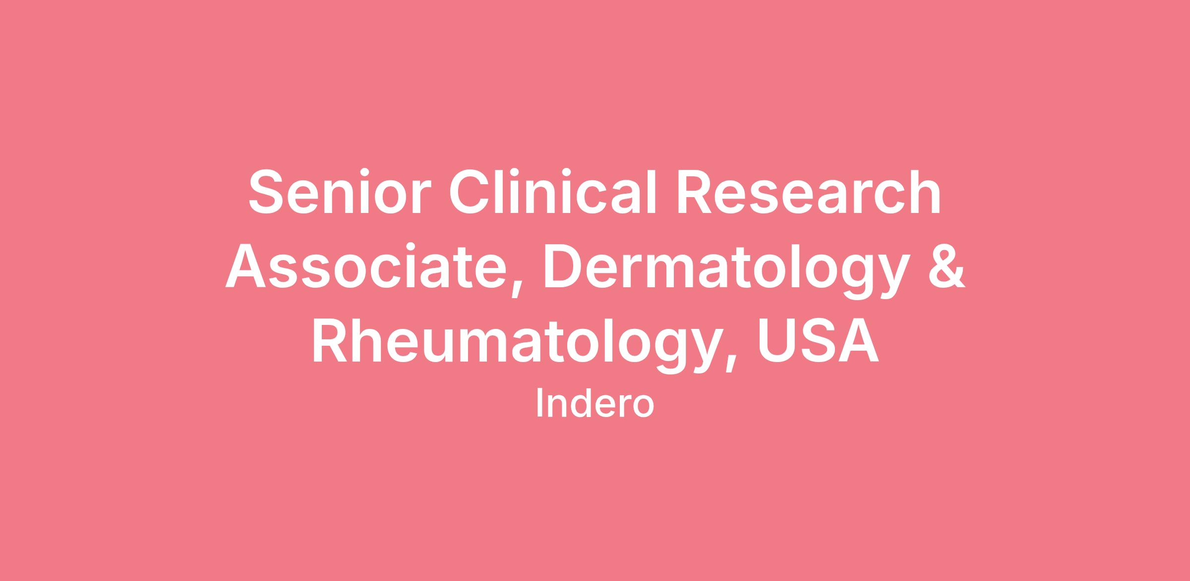 Senior Clinical Research Associate, Dermatology & Rheumatology (North Central Regions: Illinois, Indiana, Michigan, Ohio, and/or Wisconsin or East coast)