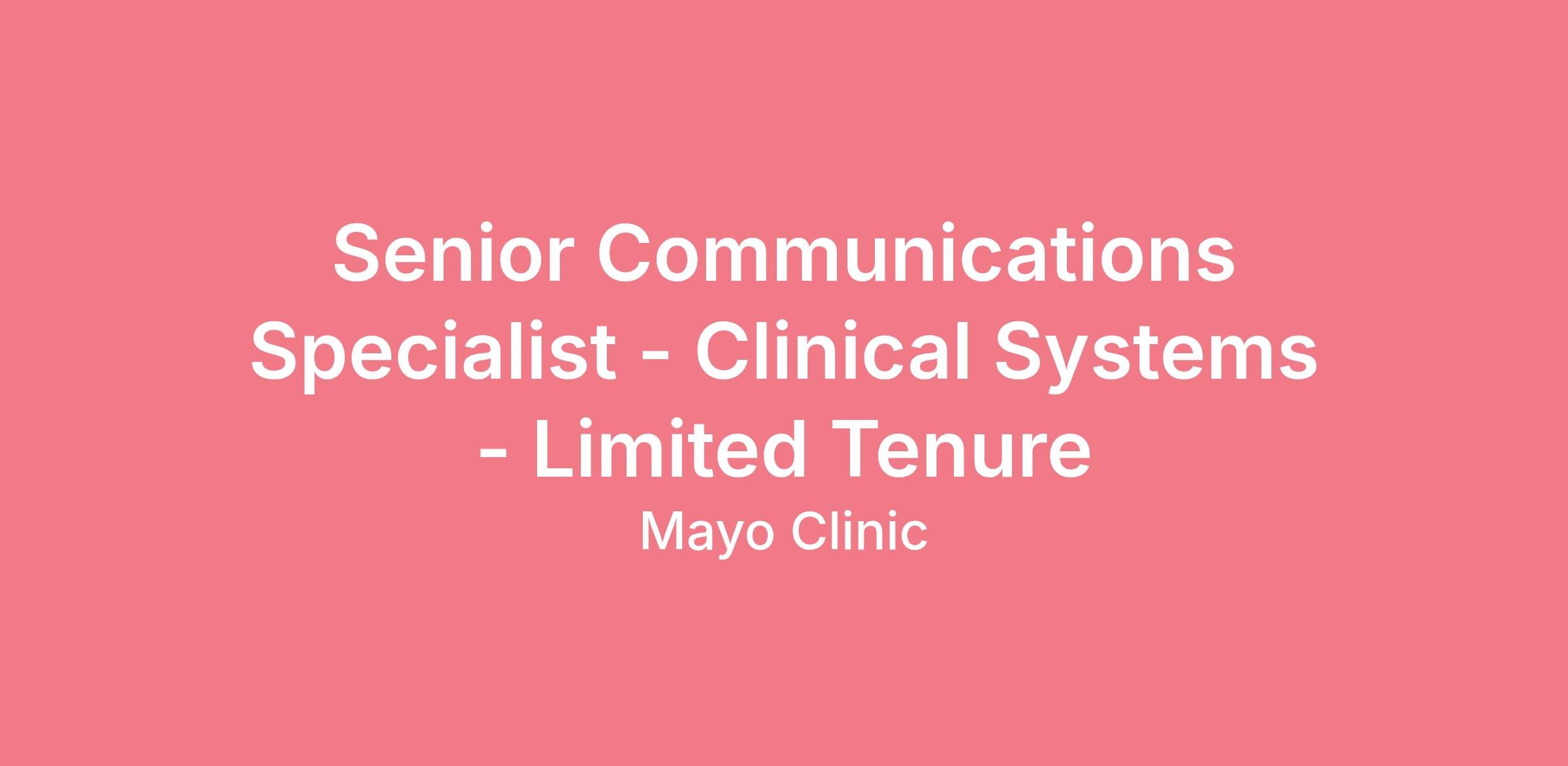 Senior Communications Specialist - Clinical Systems - Limited Tenure