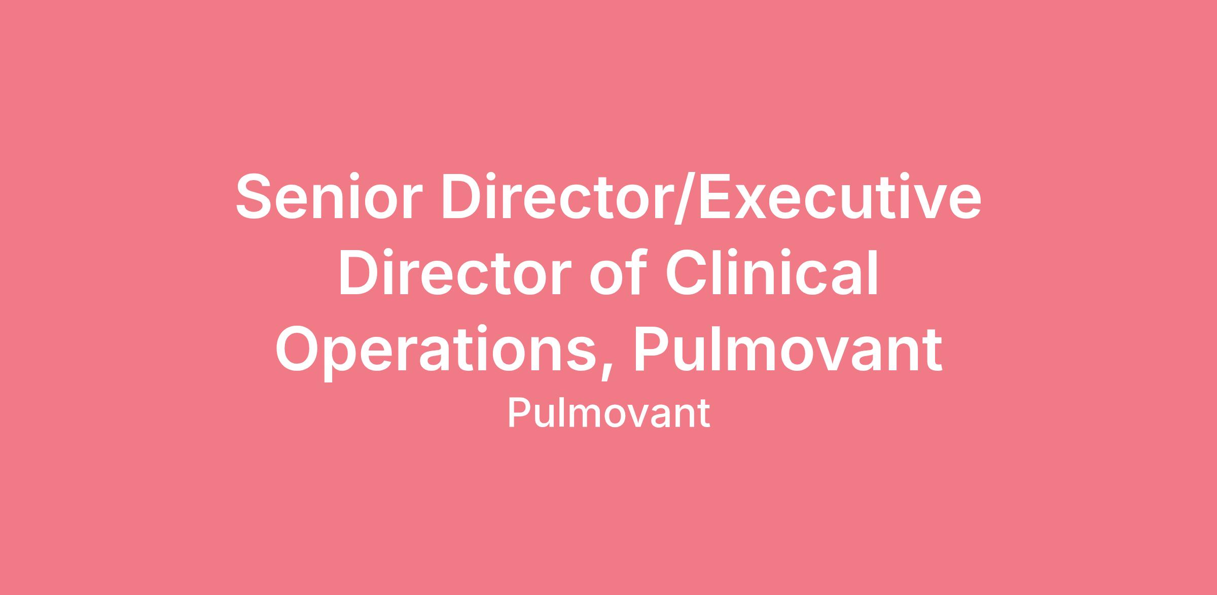 Position: Senior Director/Executive Director of Clinical Operations, Pulmovant