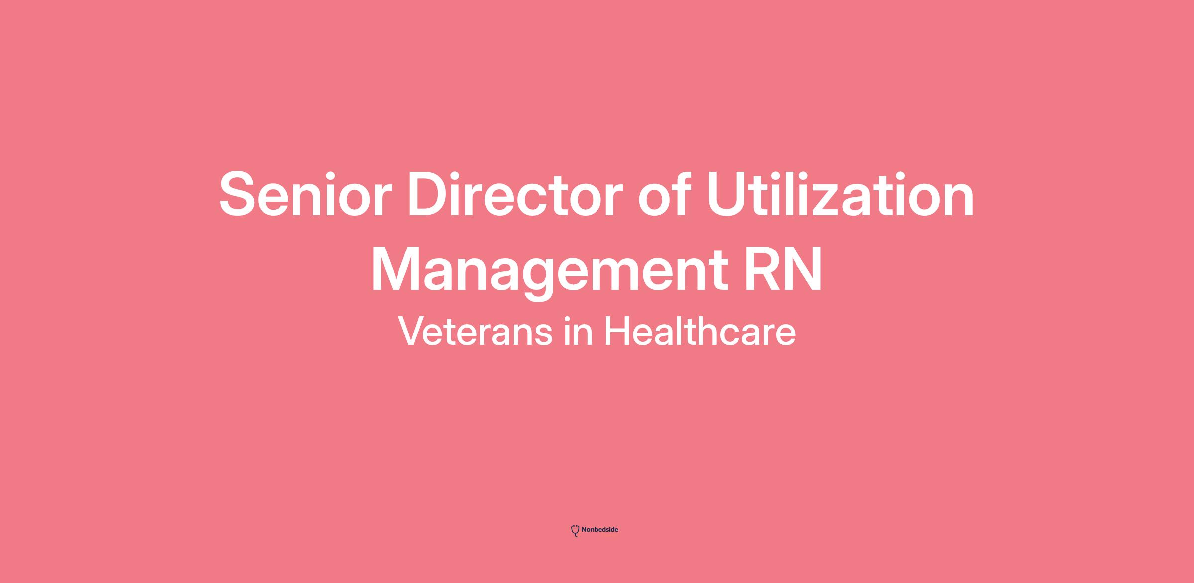 Overview Senior Director of Utilization Management RN — Veterans in Healthcare / Harbor Health Elder Service Plan (ESP) in Mattapan, MA. This role reports to the Senior Vice President of Harbor Health ESP and is responsible for strategic and operational leadership of the Utilization Management (UM) staff to ensure quality, appropriate healthcare services for ESP/PACE participants.
