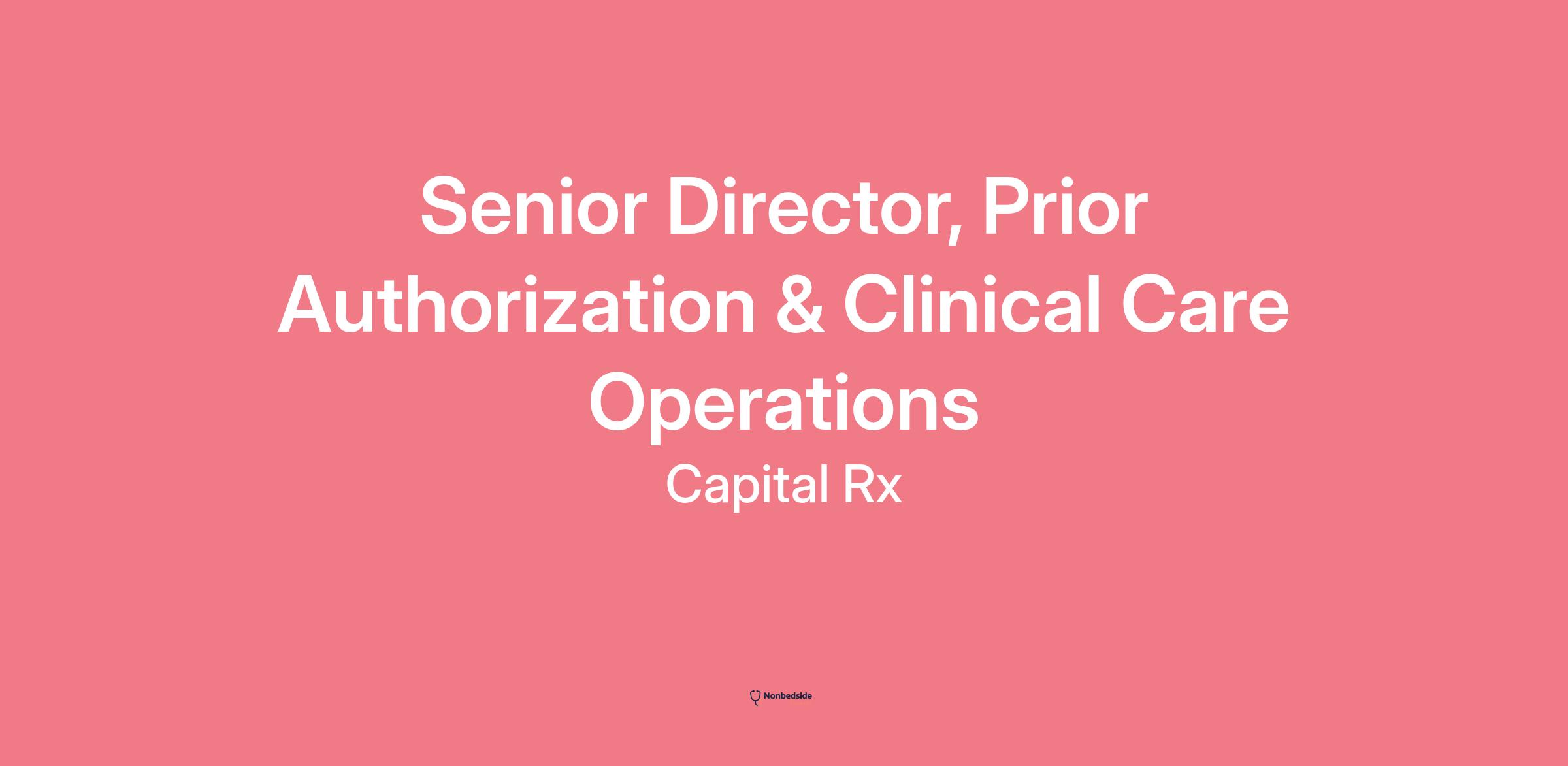 Overview Senior Director, Prior Authorization & Clinical Care Operations – Capital Rx