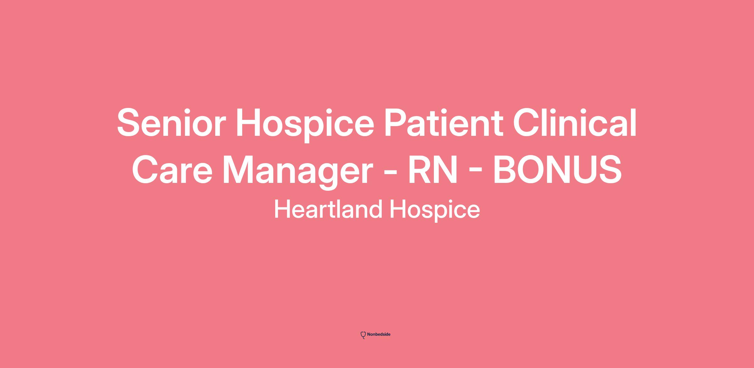 Senior Hospice Patient Clinical Care Manager - RN - BONUS Join to apply for the Senior Hospice Patient Clinical Care Manager - RN - BONUS role at Heartland Hospice