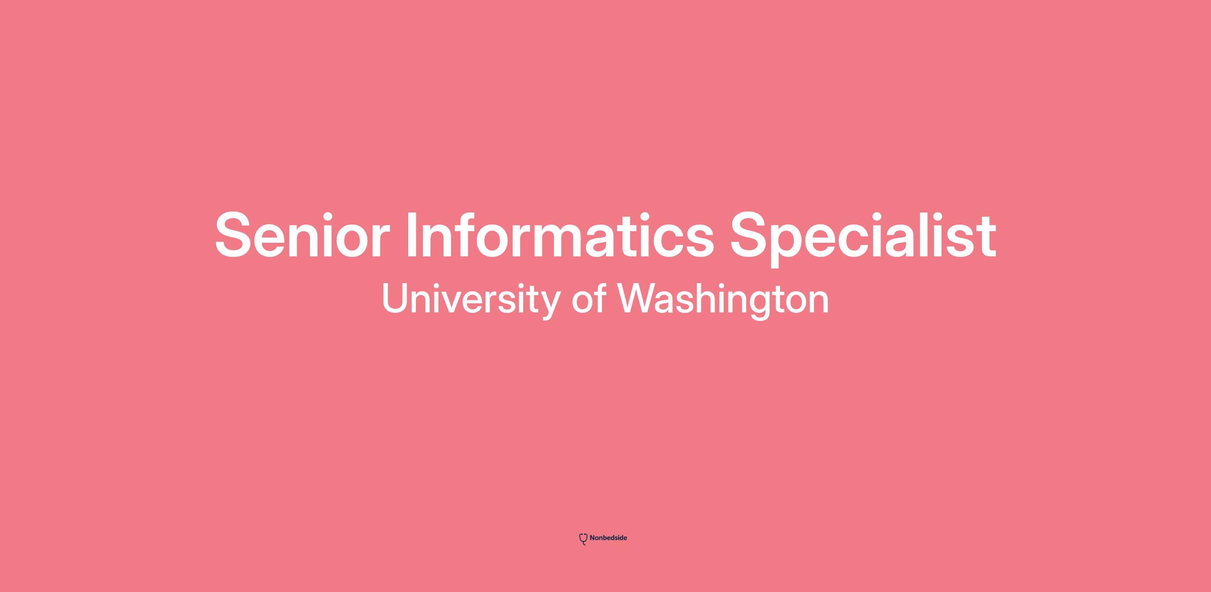UW MEDICINE IT SERVICES has an outstanding job opportunity for a Senior Informatics Specialist .