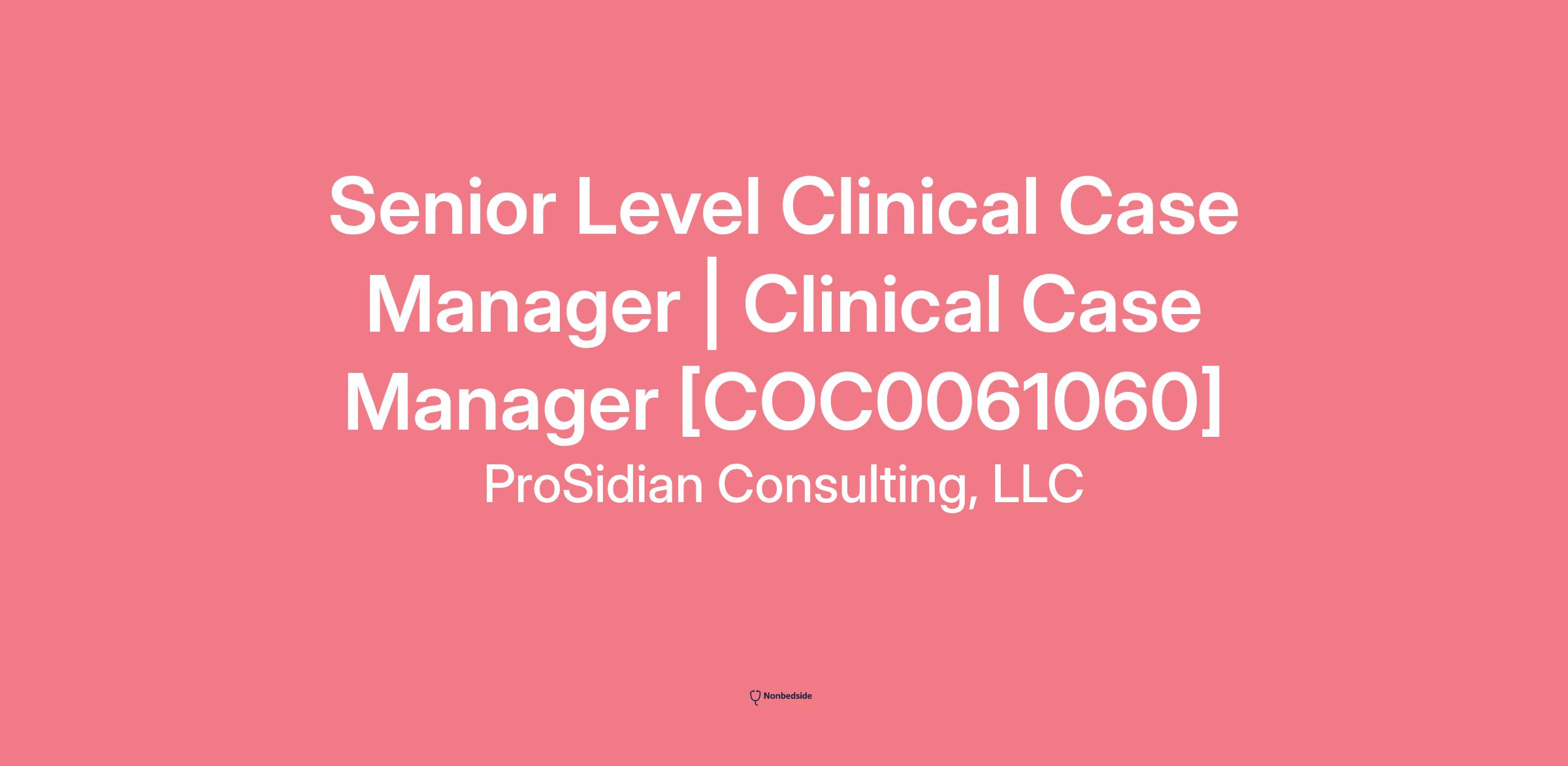 Job Description: ProSidian seeks a Senior Level Clinical Case Manager | Clinical Case Manager [COC0061060] for Program Support on a Contract Contingent basis located CONUS - Charlotte, NC, and across the Mid Atlantic Region, supporting Government and Public Services Sector Human Capital Solutions through Temporary Help Services and Recruiting/Staff Augmentation capabilities for City of Charlotte (COC).
