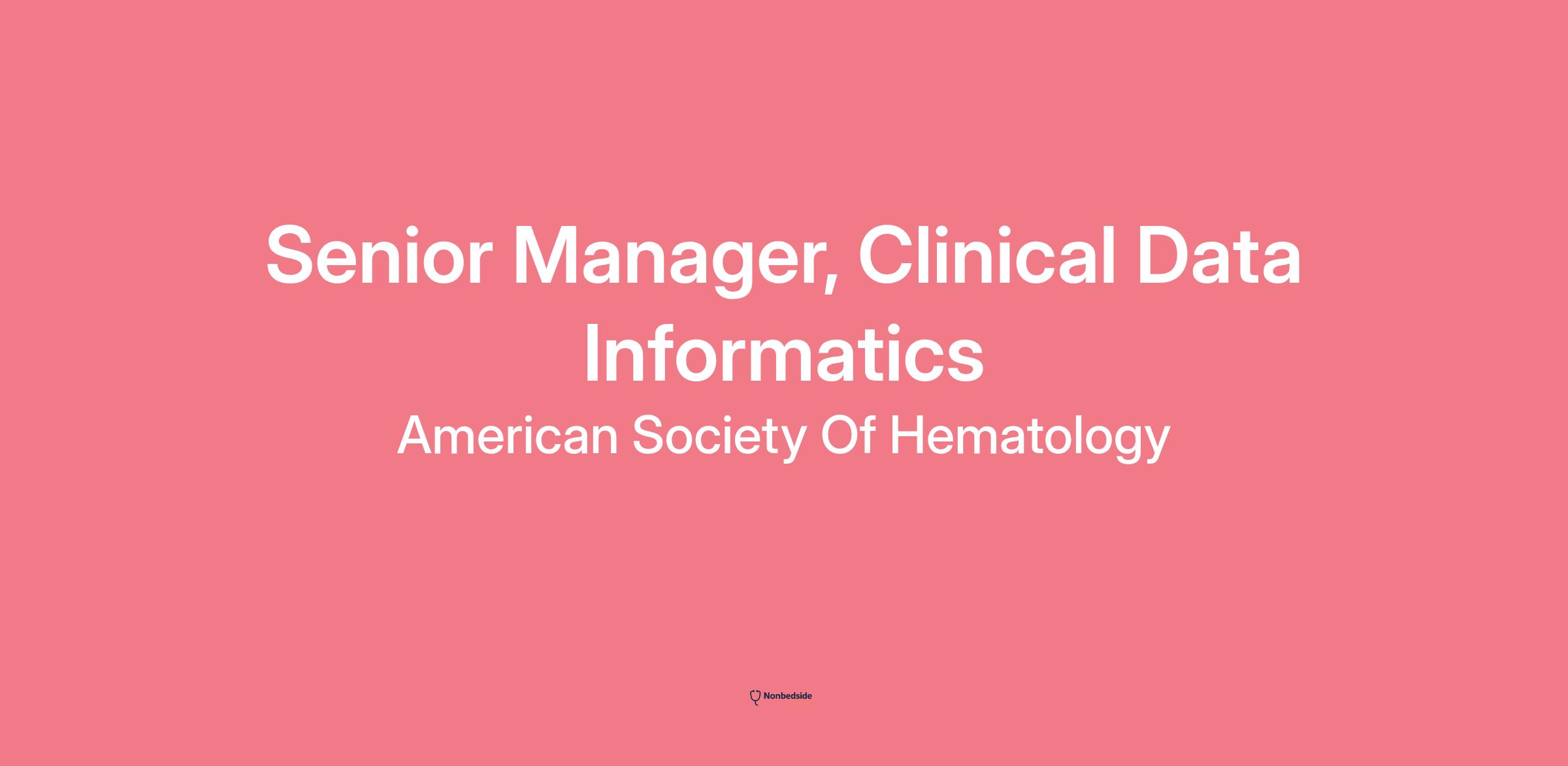 The Senior Manager, Clinical Data Informatics, plays a critical role in advancing the ASH Research Collaborative (ASH RC) Data Hub program as a primary business analyst for the design, development, and implementation of technology tools used by ASH RC participants and stakeholders. This position bridges the gap between clinical subject matter experts and technology teams to ensure that products meet the needs of researchers, clinicians, industry, and federal agency partners.