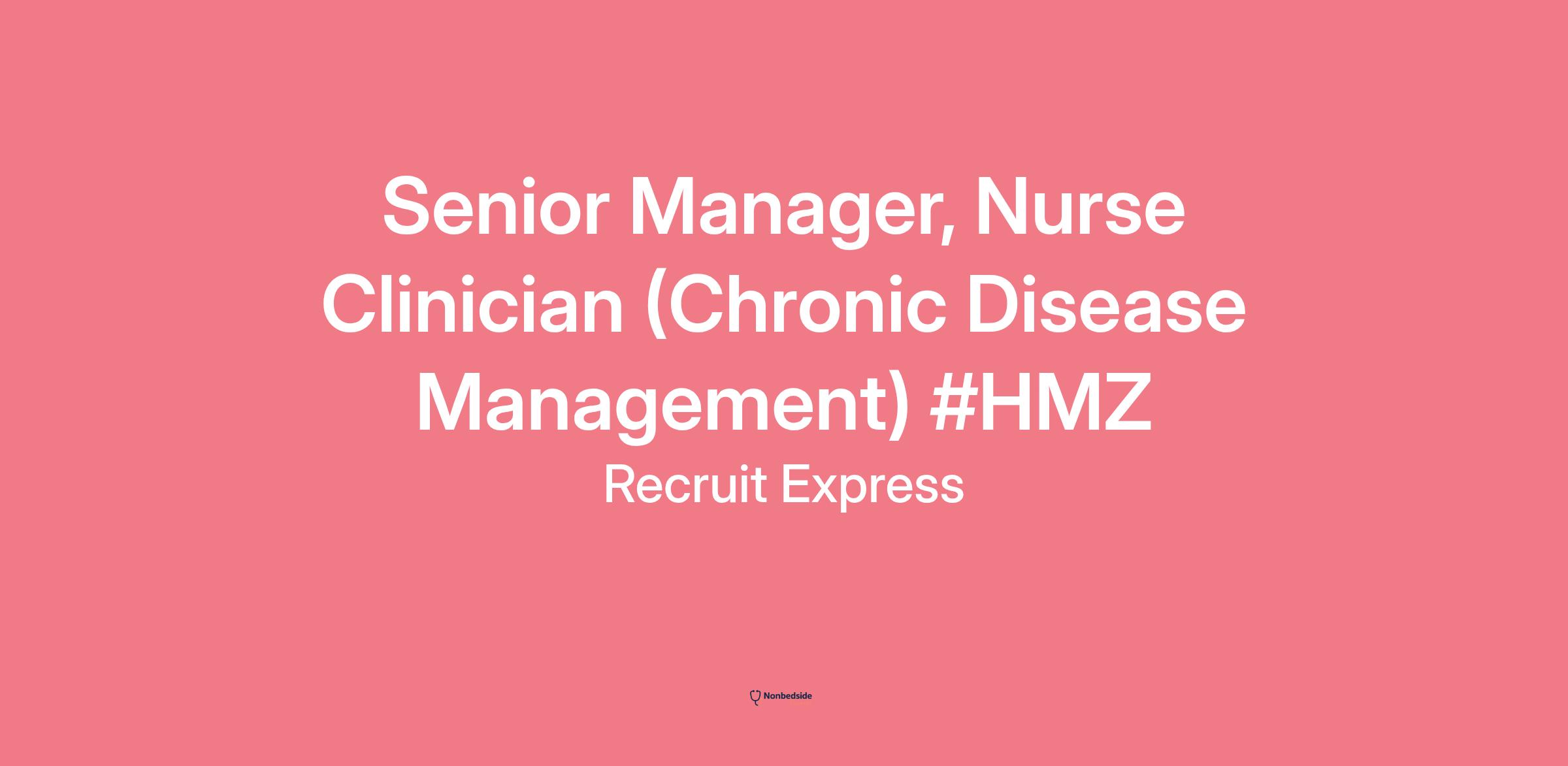 Senior Manager, Nurse Clinician (Chronic Disease Management) #HMZ