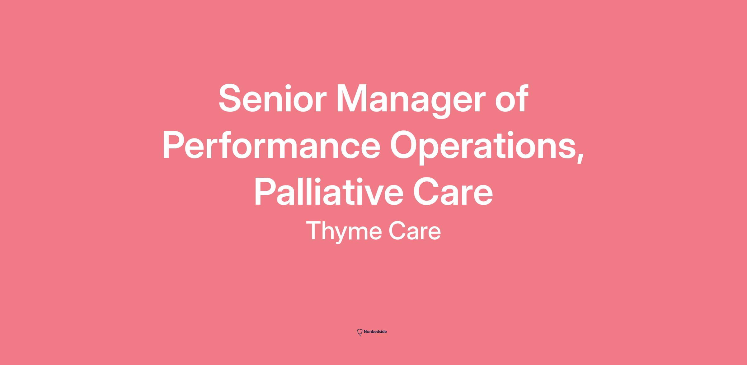 As the Senior Manager, Performance Operations - Palliative Care, you will be responsible for improving the successful connection of members with serious illness to specialty palliative care, monitoring and optimizing operations for our virtual palliative care clinic, and providing operational and project management support for initiatives that improve outcomes for our serious illness population. You will implement, monitor, and iterate care delivery processes, ensuring scalable and measurable outcomes.