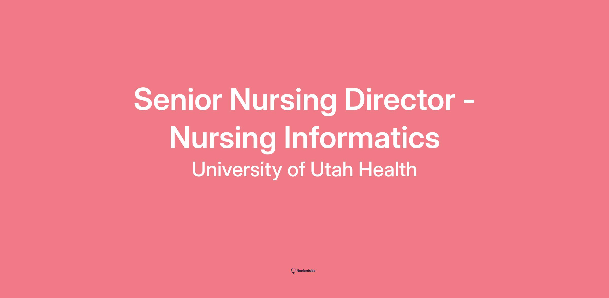 University of Utah Health is seeking a new Senior Nursing Director to lead Nursing Informatics. In support of the organization's goals and mission, the incumbent supports the Associate Chief Nursing Officer for Ambulatory Services in leading Nursing Informatics across the University of Utah Health system of Hospitals and Clinics. This position directs the human resources, customer/patient services, and financial management for their assigned nursing areas. The Senior Director Nursing works directly with nurse managers to ensure patient safety and quality of care are provided. The incumbent also acts as a catalyst between departments, faculty, physicians and staff to ensure continuity and quality of service. This position may be required to access and administer medications within their scope of practice and according to State Law.