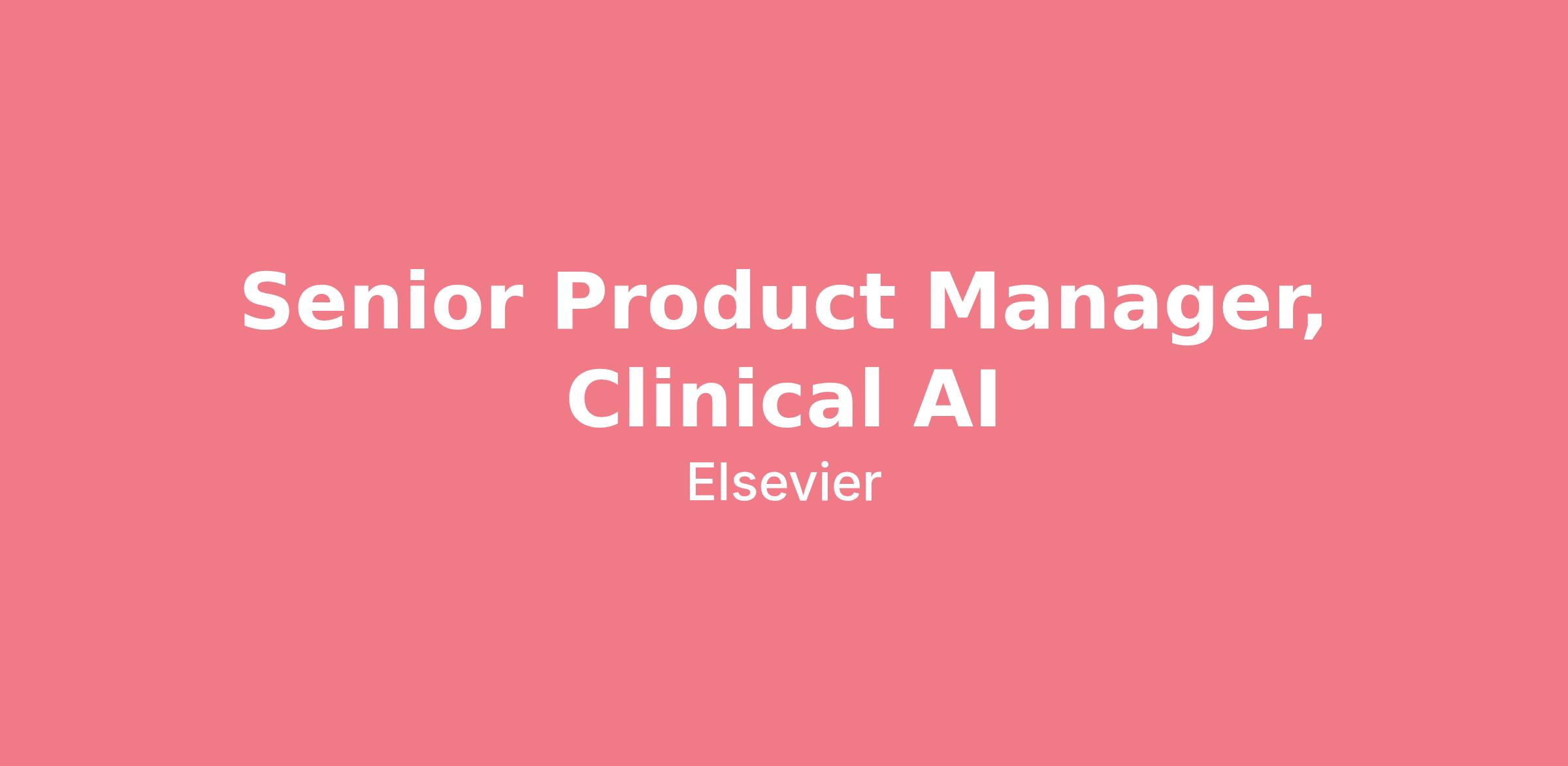 We are seeking a Senior Product Manager, ClinicalKey AI to lead the vision, strategy, and delivery of AI capabilities that elevate how healthcare uses access knowledge, apply evidence, and grow their skills. Working in close partnership with product managers across our Clinical Solutions portfolio, you’ll focus specifically on developing AI-powered experiences that enhance ClinicalKey AI. You’ll blend curiosity, technical fluency, and empathy for the clinical user to turn emerging AI technologies into meaningful, trustworthy products used by healthcare workers worldwide.