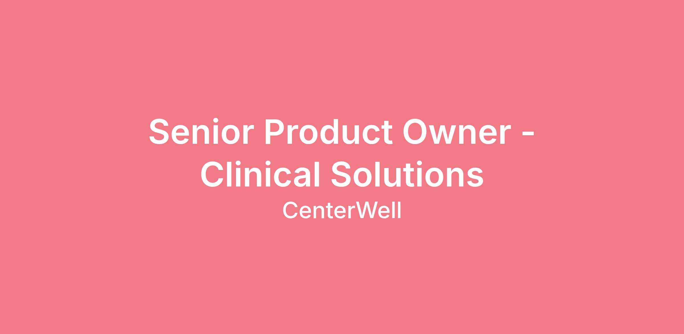 Senior Product Owner – Clinical Solutions (P3)