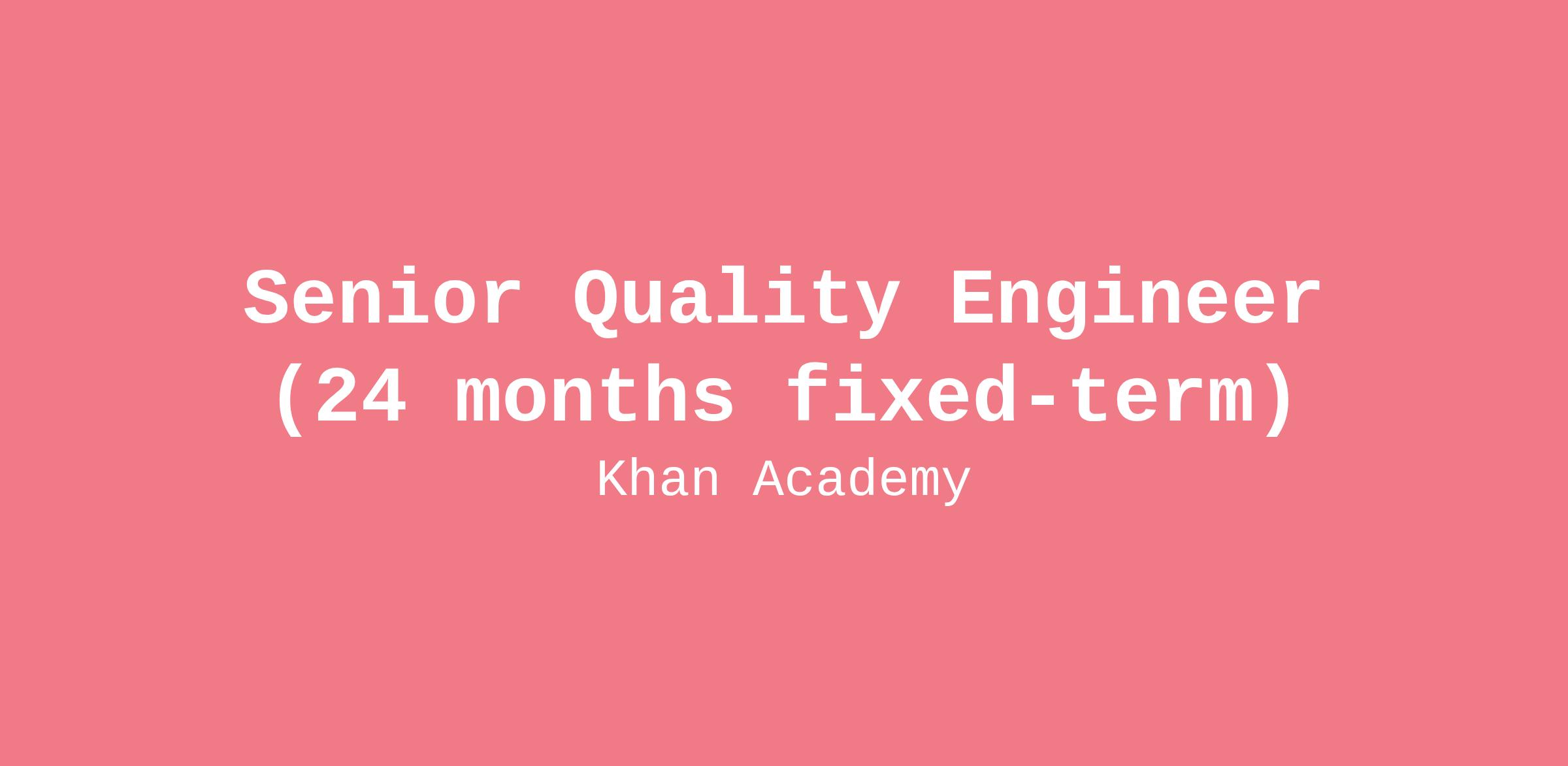 Candidates with experience in any and all technologies. We don’t require experience in any particular language or tool. Our commitment to onboarding and mentorship means you won’t be left in the dark as you learn new technologies. If you’re looking for the opportunity to grow as a Quality expert, ensuring Khan Academy ships high-quality products that solve real problems for learners and educators, we’d love to hear from you. Even if you don’t check every box (no one does), we encourage you to apply!