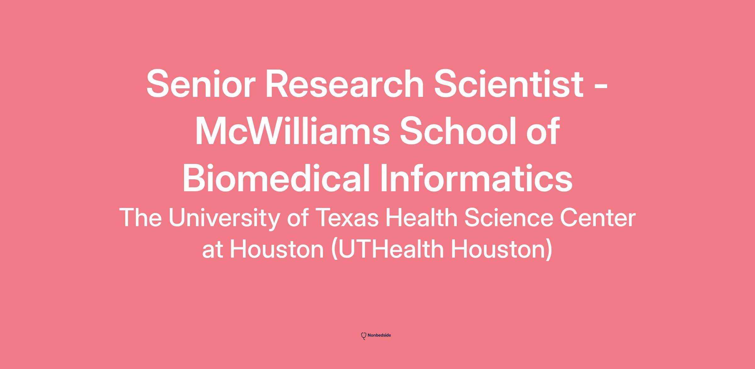 Senior Research Scientist - McWilliams School of Biomedical Informatics Join to apply for the Senior Research Scientist - McWilliams School of Biomedical Informatics role at The University of Texas Health Science Center at Houston (UTHealth Houston)
