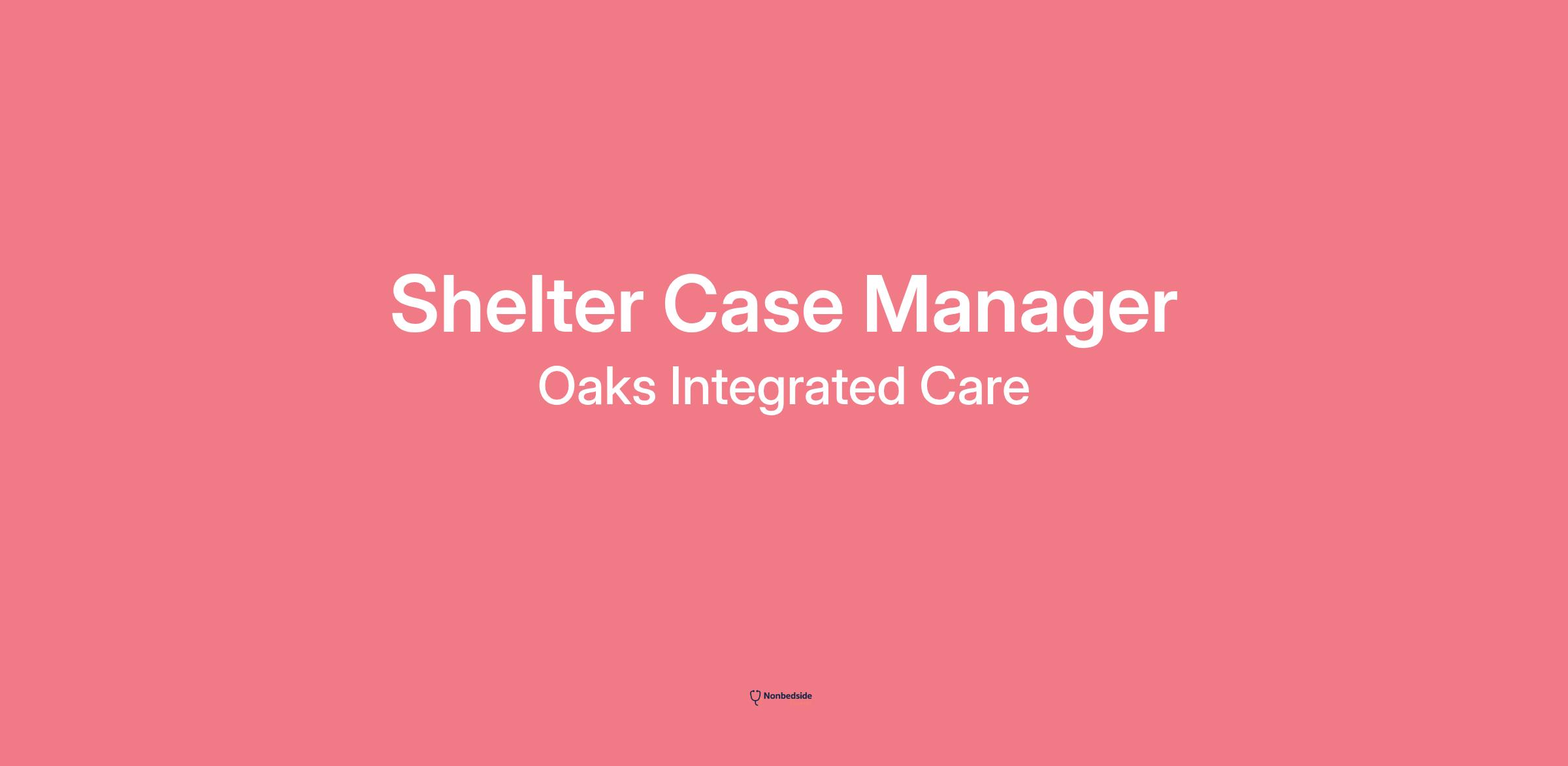 Join to apply for the Shelter Case Manager role at Oaks Integrated Care