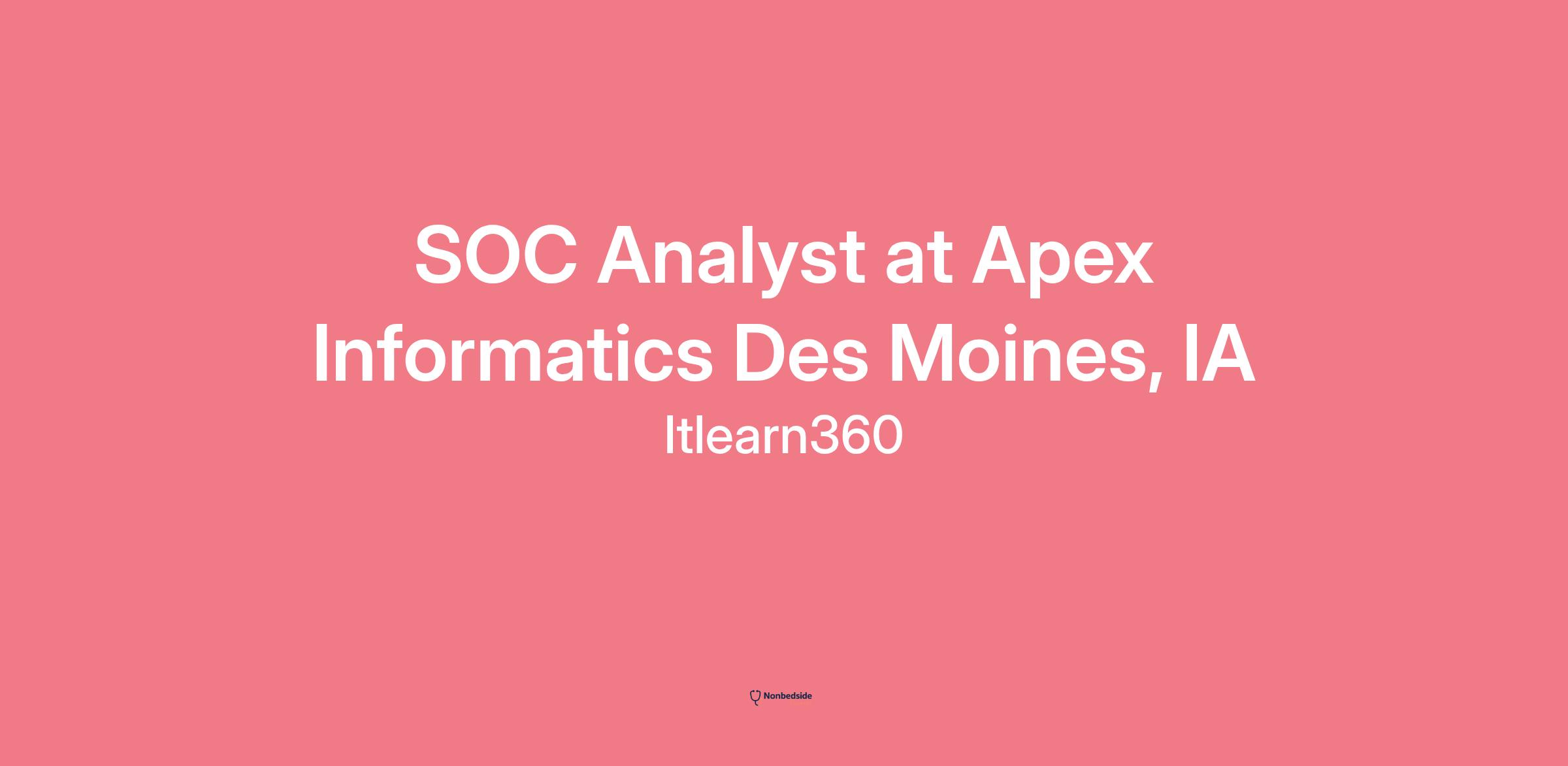 SOC Analyst job at Apex Informatics in Des Moines, IA.
