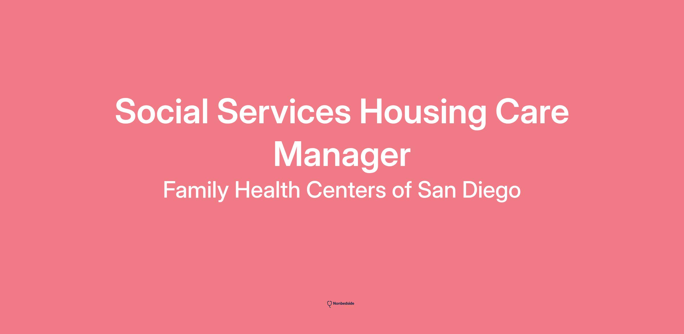 Family Health Centers of San Diego (FHCSD) is looking for a Social Services Housing Manager. The Social Services Housing Manager will provide housing specific Community Support (CS) services to eligible Medi-Cal Managed Care beneficiaries. Will address the clinical and non-clinical needs of high-need, high-acuity Medi-Cal Members through systematic coordination of services and comprehensive care management.