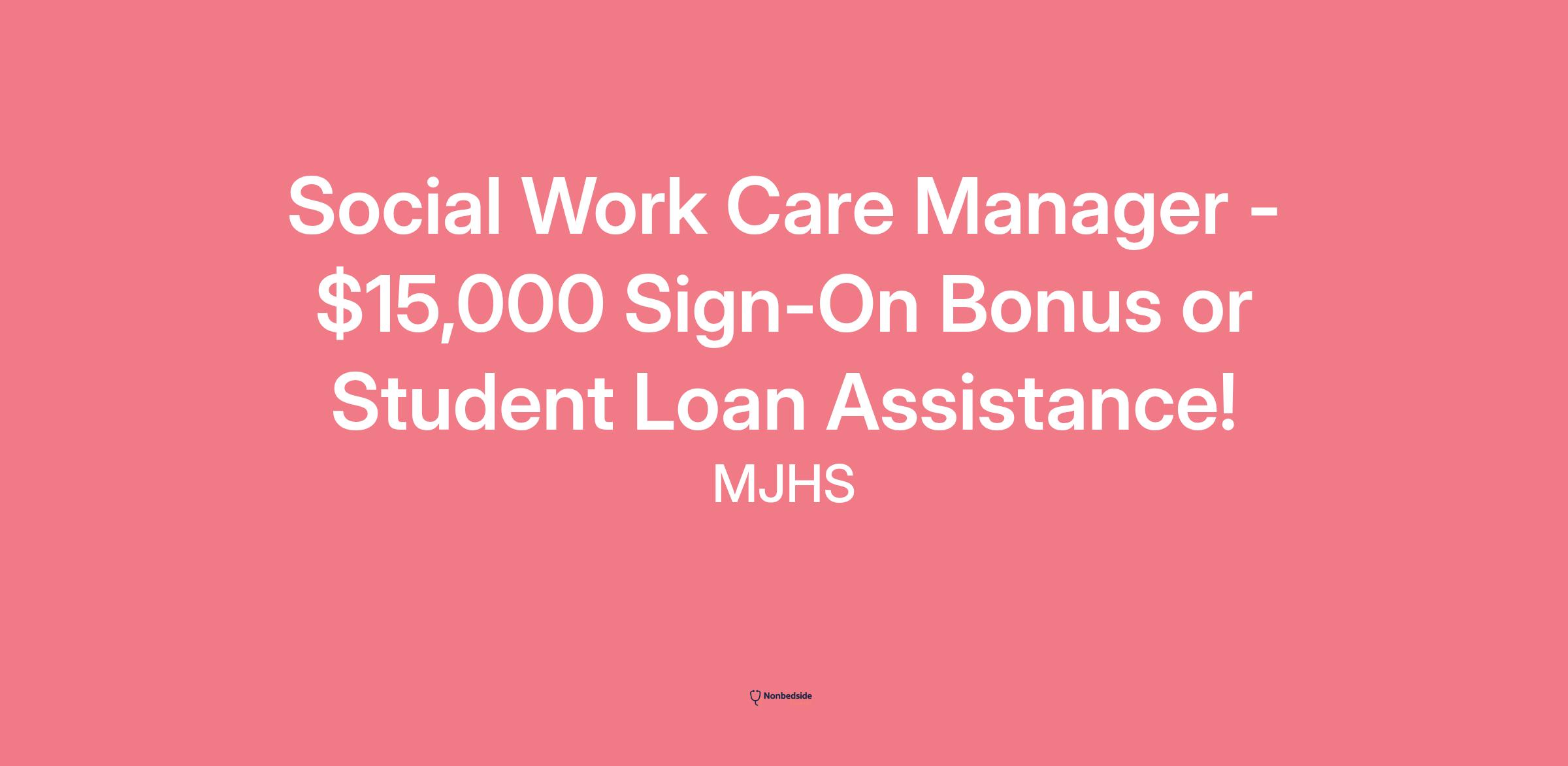 Social Work Care Manager - $15,000 Sign-On Bonus or Student Loan Assistance!