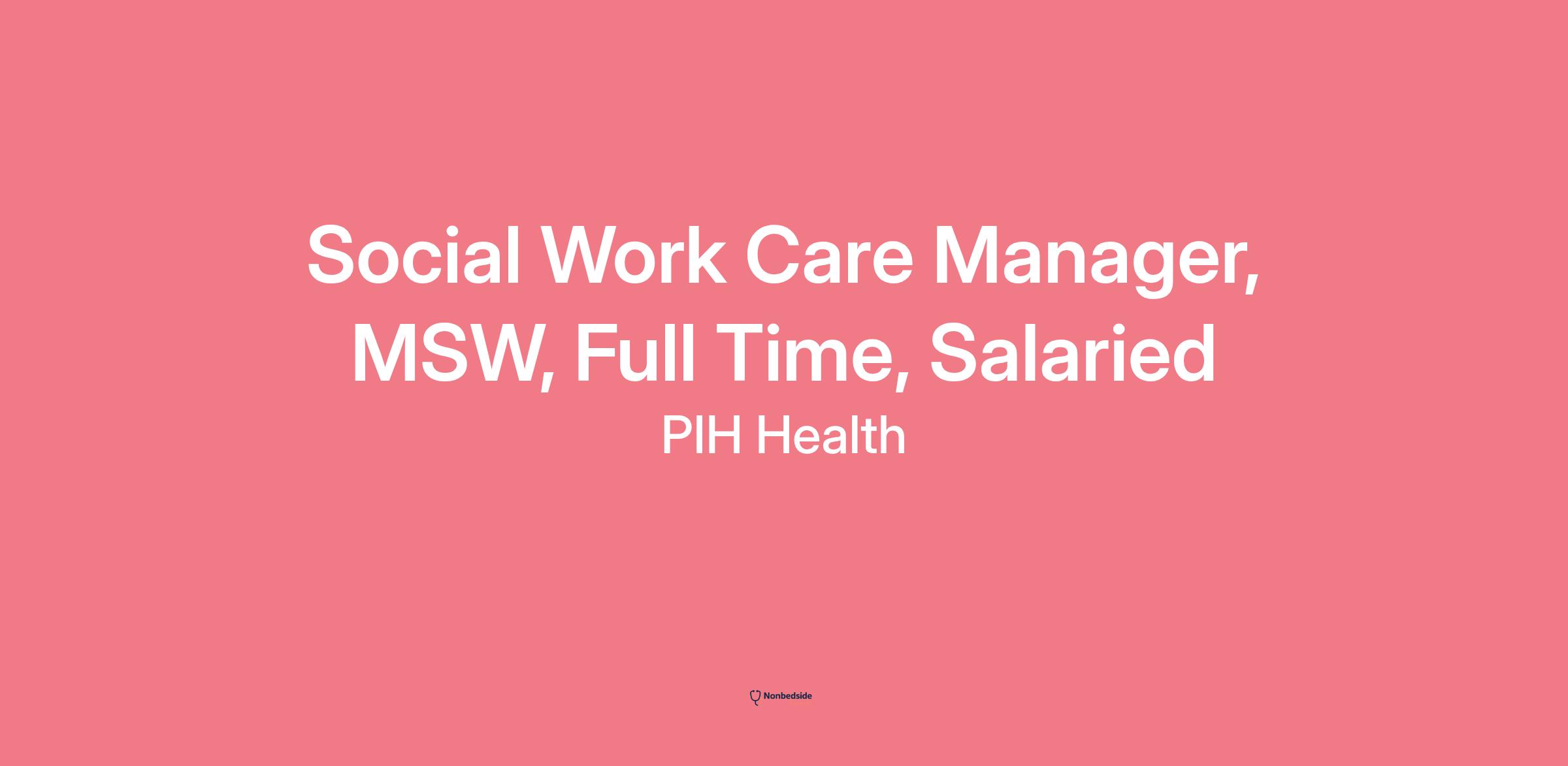 Social Work Care Manager, MSW, Full Time, Salaried Pay: $66,060.80 - $108,992.00 / year