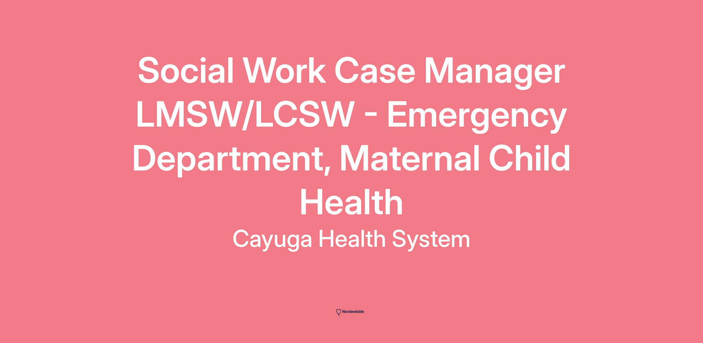 Social Work Case Manager (LMSW/LCSW) - Emergency Department, Maternal Child Health