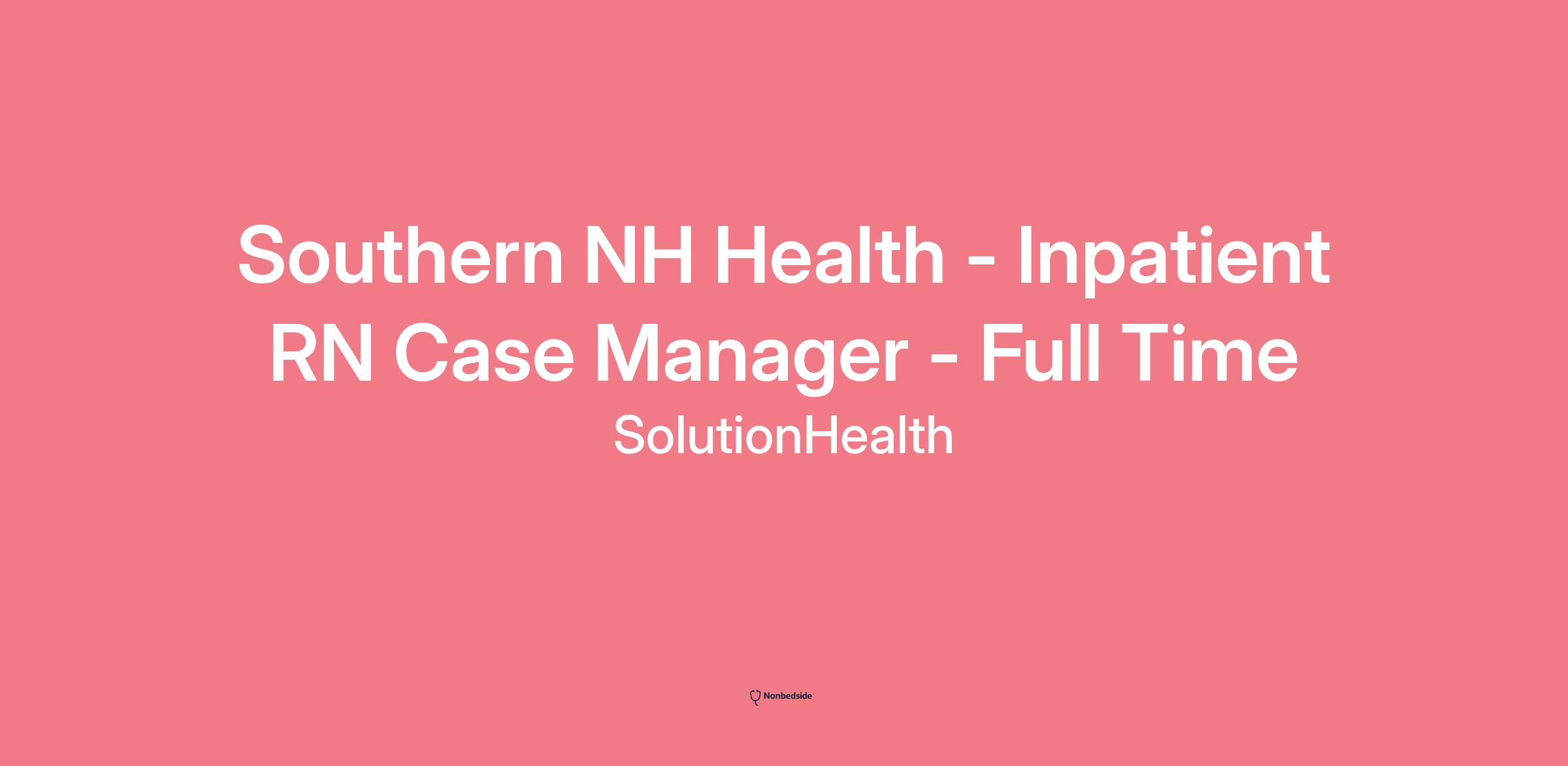 Southern NH Health - RN Acute Care Case Manager - Full Time page is loaded Southern NH Health - RN Acute Care Case Manager - Full Time Apply locations Nashua, NH time type Full time posted on Posted 5 Days Ago job requisition id JR8577 Come work at the best place to give and receive care!