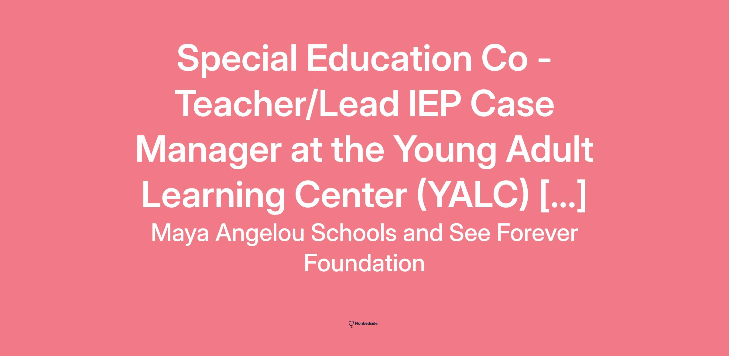 Special Education Co - Teacher/Lead IEP Case Manager at the Young Adult Learning Center (YALC) SY 25-26