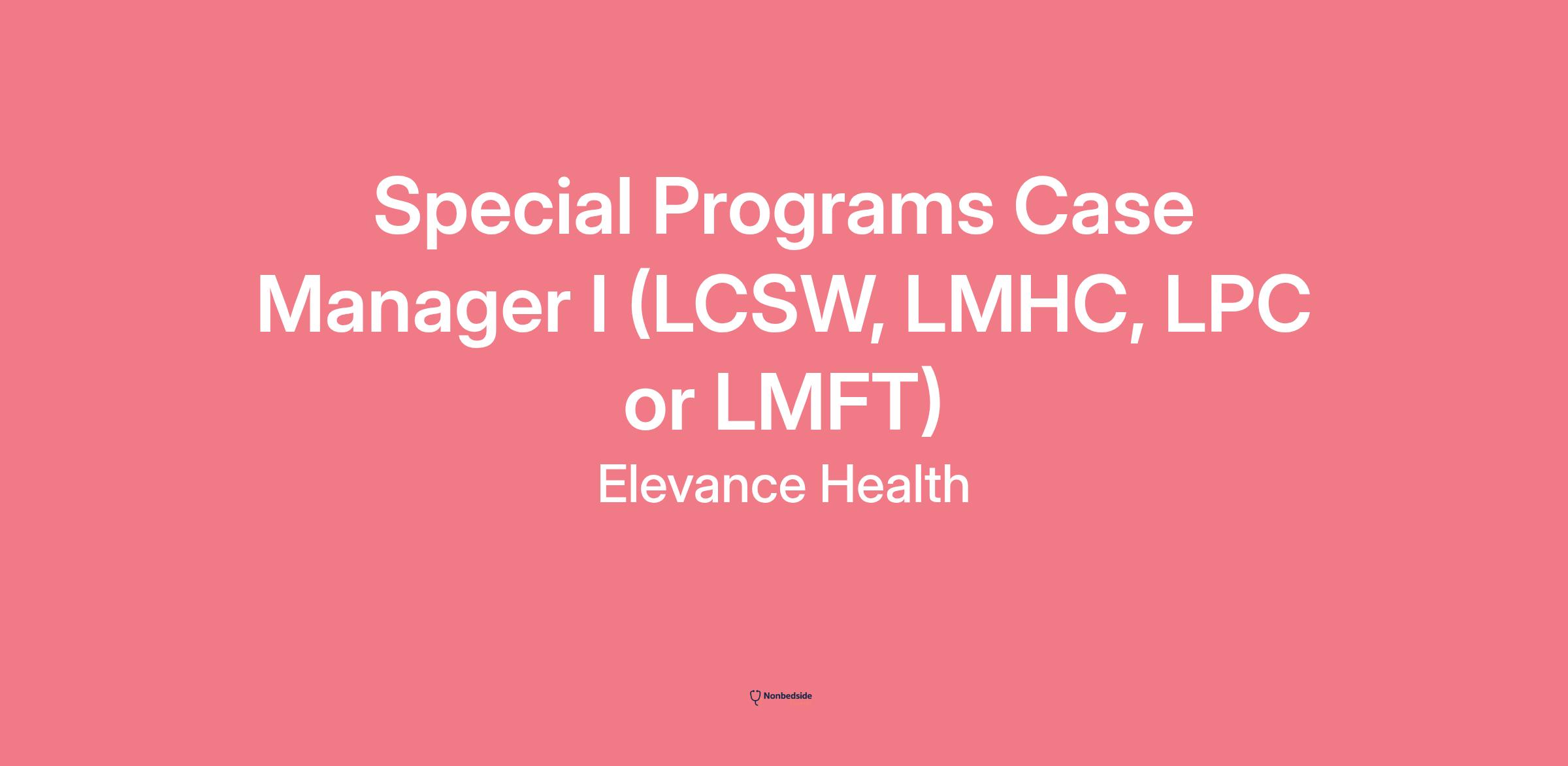Join Elevance Health as a Special Programs Case Manager I (LCSW, LMHC, LPC or LMFT).