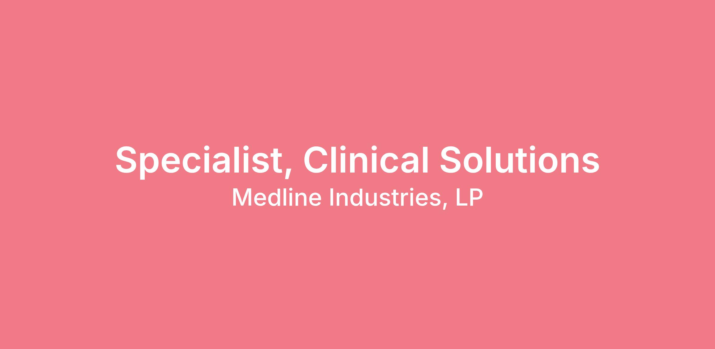 This Specialist, Clinical Solutions provides education and support to Health Care Professionals on Incontinence Products sold at Medline and to be knowledgeable on the safe and effective use of the Medline Skin Care products.Job Description