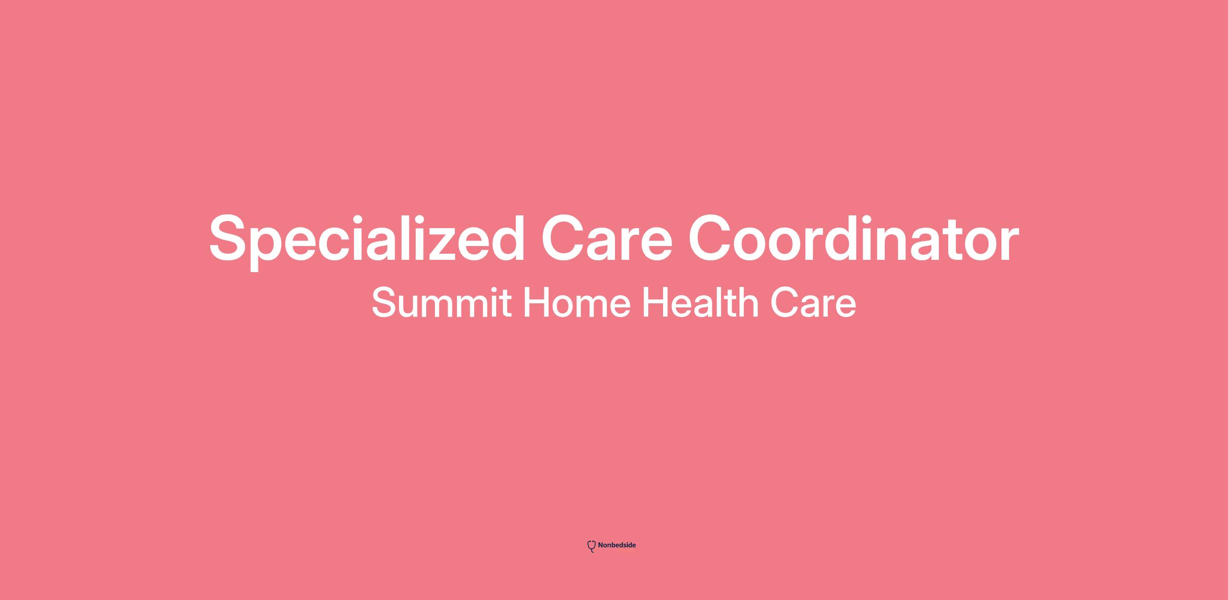 Summit Home Health Care provided pay range This range is provided by Summit Home Health Care. Your actual pay will be based on your skills and experience — talk with your recruiter to learn more.