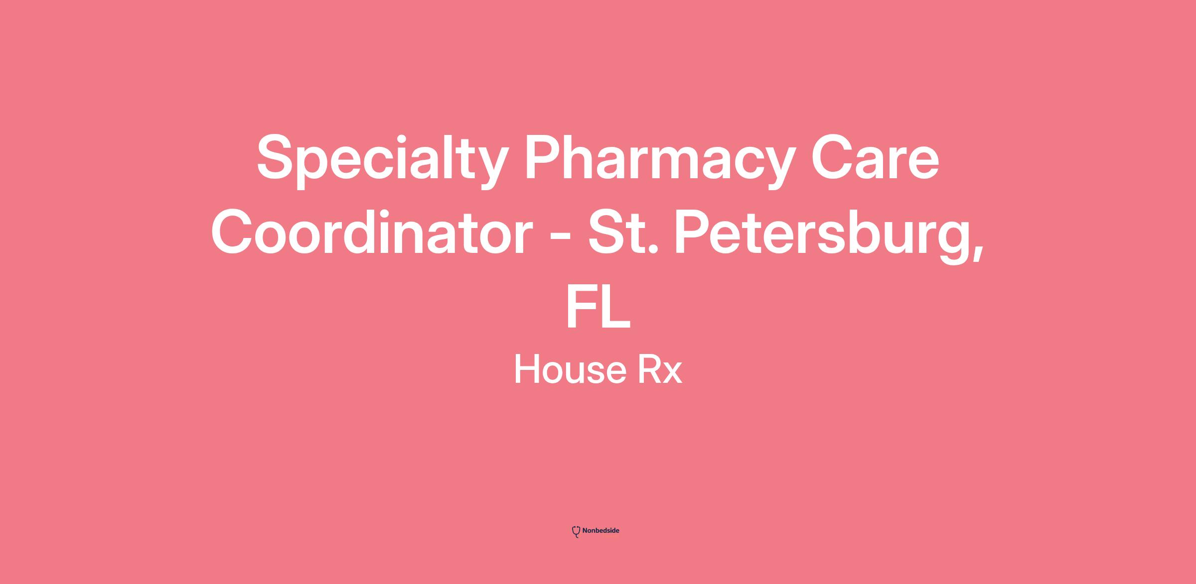 We're looking for an On-Site Specialty Pharmacy Care Coordinator in St. Petersburg, FL to help us make specialty medications more accessible and affordable for patients. Keep reading to learn more about the role, our team and why House Rx is the right next step in your career.
