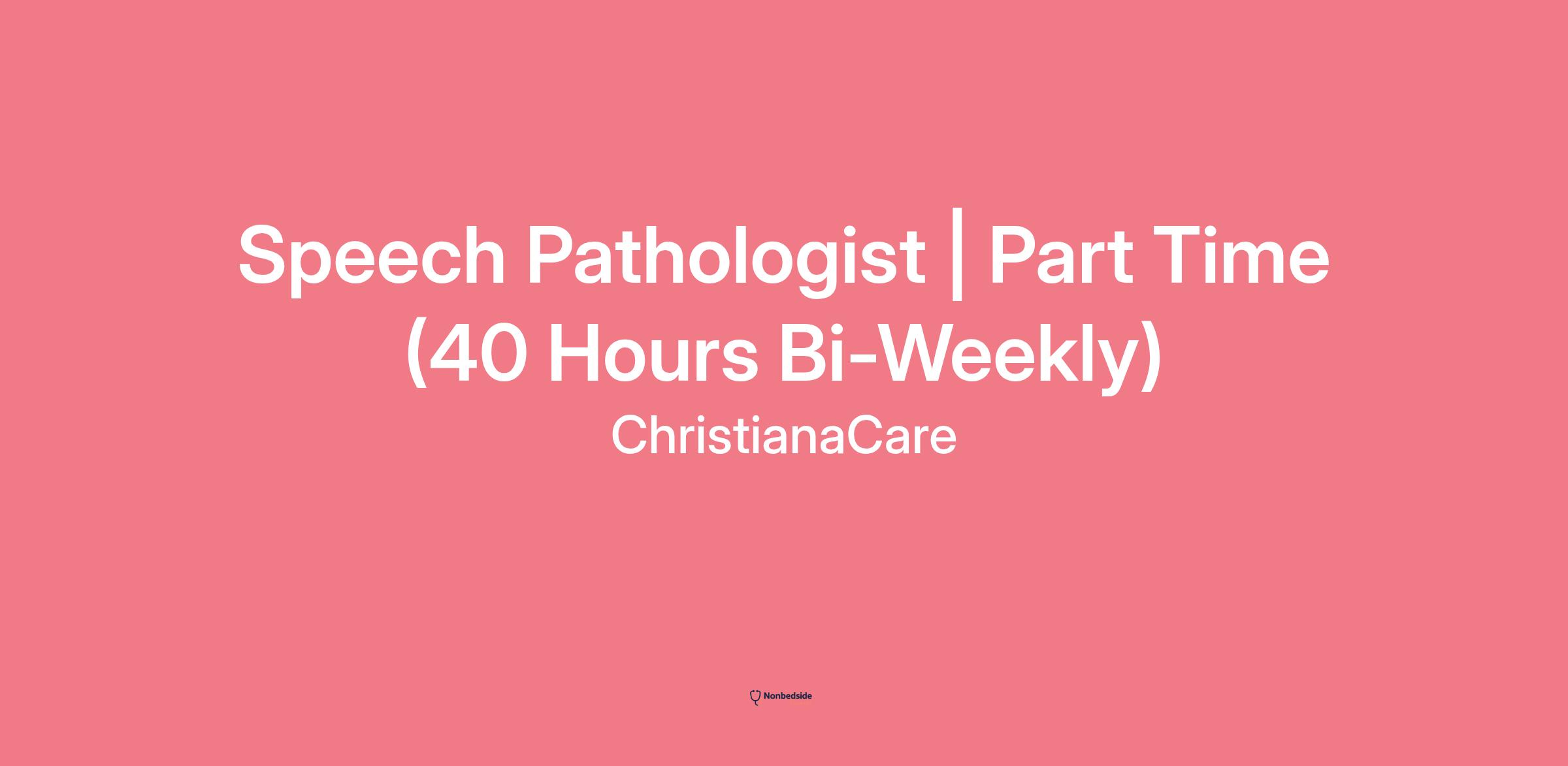 ChristianaCare is recruiting for a part time (40 hours bi-weekly) Speech Language Pathologist. Days/Hours for this position are: