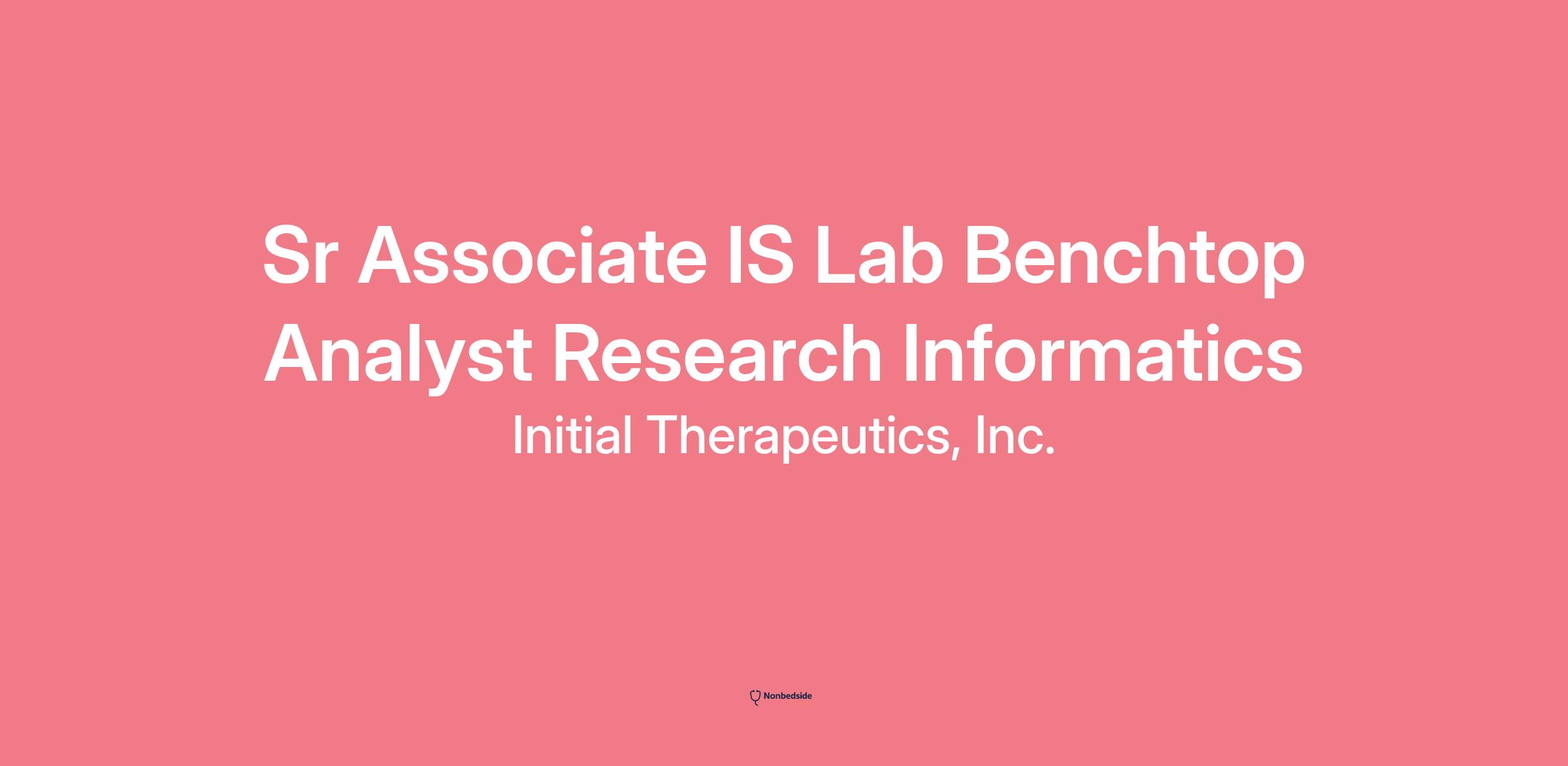 Sr Associate IS Lab Benchtop Analyst Research Informatics What you will do